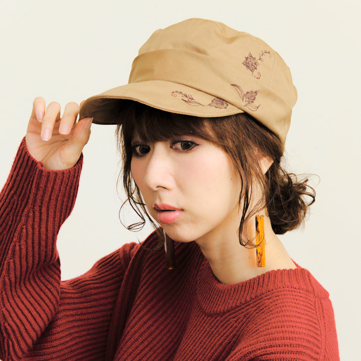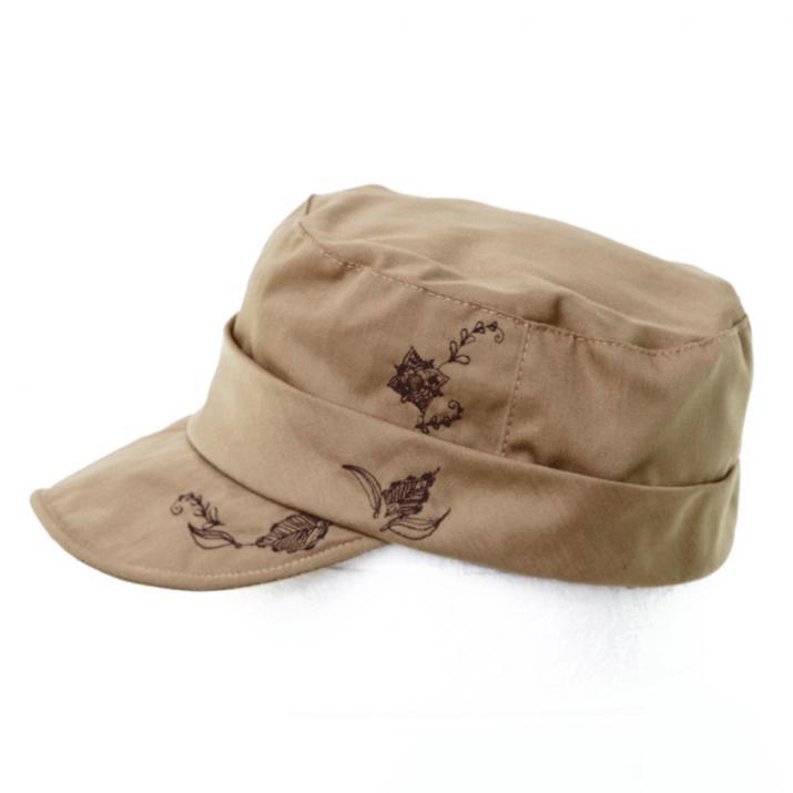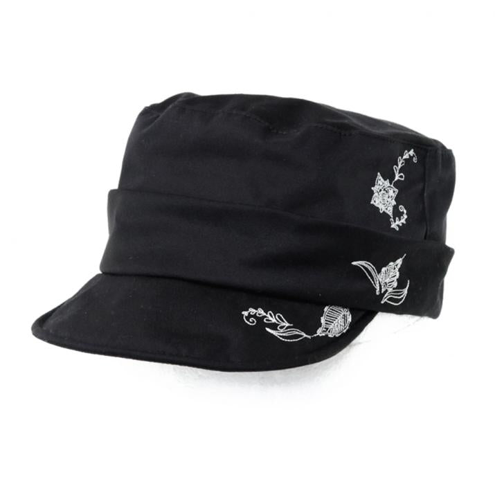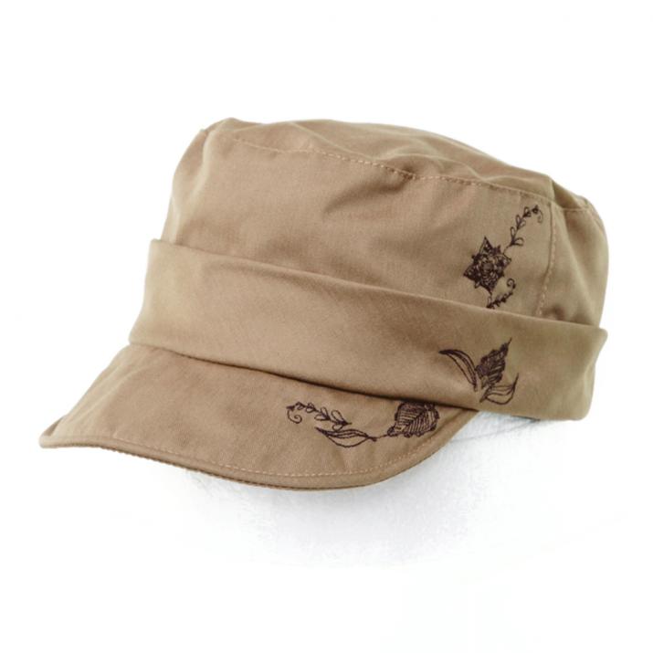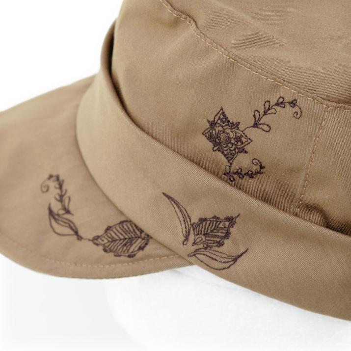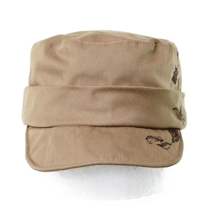 繊細なお花刺繍がお洒落なワークキャップ。スタンダードなワークキャップに女性の可愛らしさをプラスしたキュートカジュアルなスタイルにぴったりのアイテムです。コットン100%の柔らかい素材感で、優しい被り心地。サイズ調節も可能なので、ぶかぶかせずフィット感があります。ツバ先にはワイヤーが入っていますので、折ったり真っ直ぐにしたりとお好みのシルエットにして頂けます。