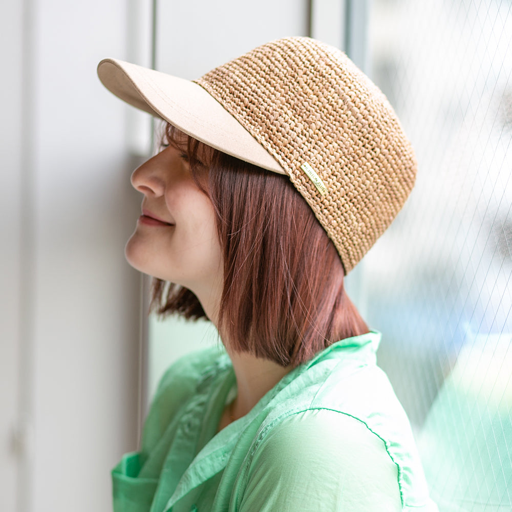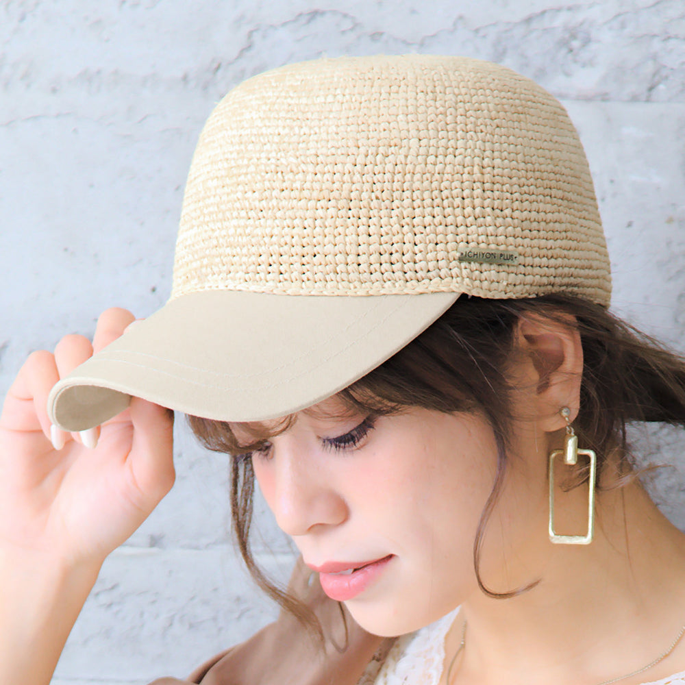 天然草(ラフィア)100%のナチュラルで爽やかなジョッキーキャップ。サイドの14+のゴールドタグが特別感を演出するこだわりのオリジナルアイテムです。つば部分はコットン素材を使用し、異素材の組み合わせが他にないデザイン。この夏のカジュアルスタイルに欠かせないヘビロテ間違いなしのおすすめアイテムです。