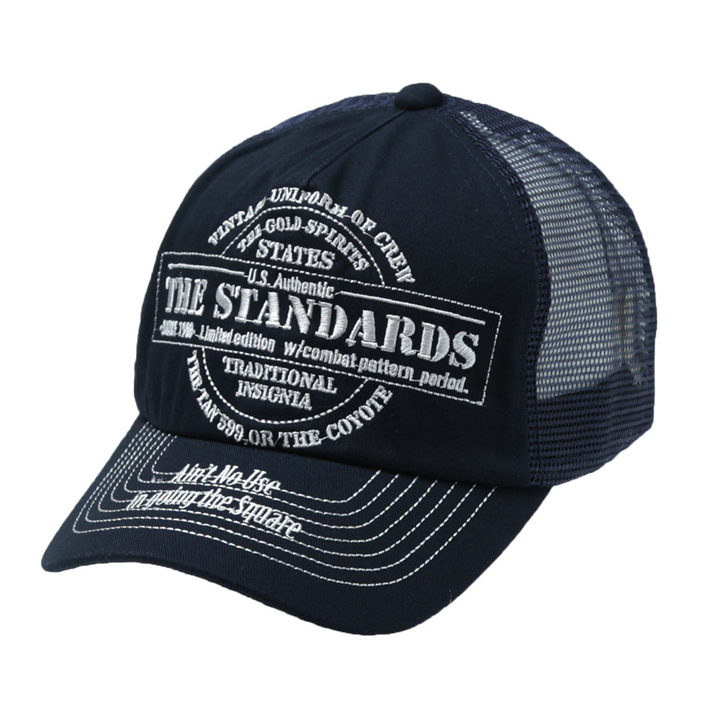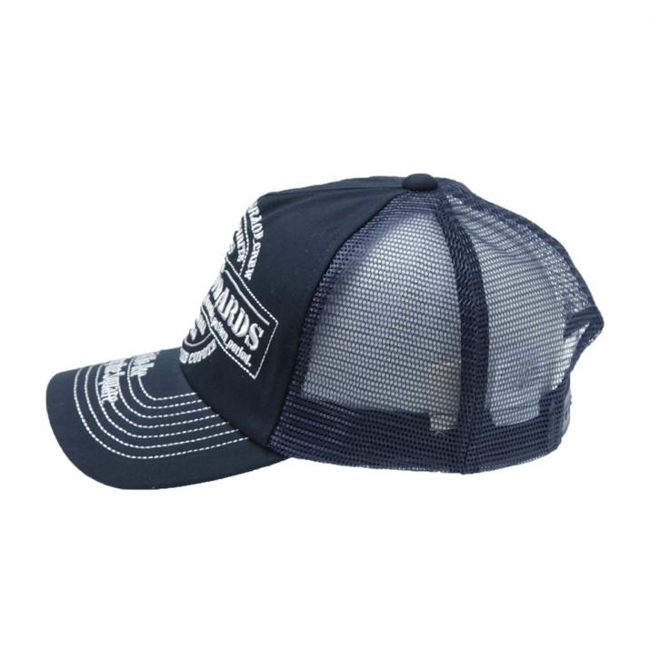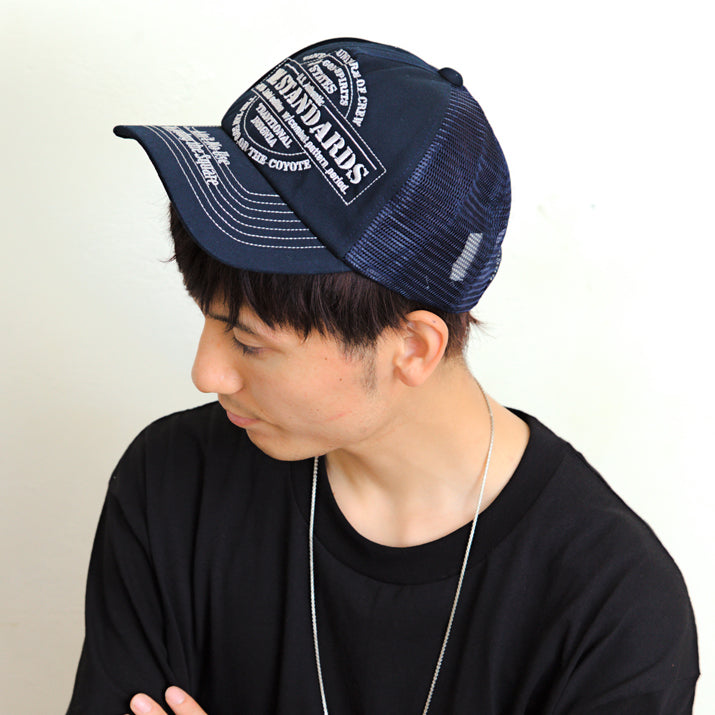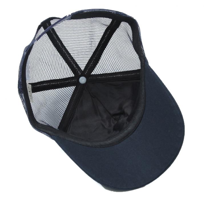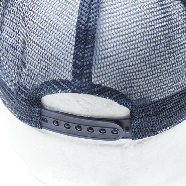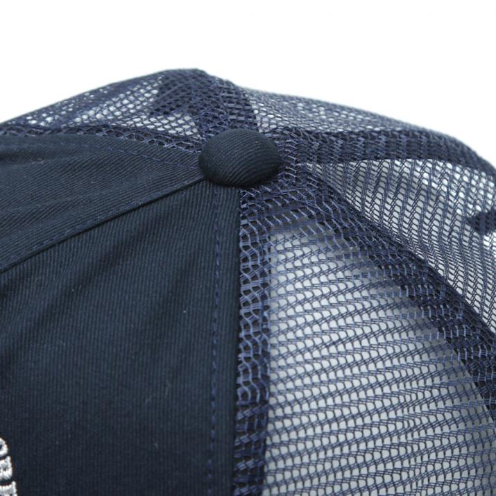 インパクトのあるフロントとつばのロゴ刺繍が印象的なメッシュキャップです。扱いやすいカラーに、ロゴ刺繍もワンカラーで統一されていますのでコーデを邪魔せずしっかり惹き立てます。フロント以外にはメッシュ素材を使用していますので、通気性に優れ爽やかで軽やかな被り心地です。しっかりした作りなので、型崩れしにくく安定して被ることができます。