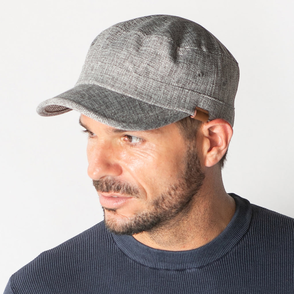 カジュアルスタイルに欠かせないワークキャップ!ポリジュートのデザインで通気性に優れ、見た目にもとても爽やかな印象のアイテムです。シンプルなワンカラーに、サイドの革タグがワンポイントになったこだわりを感じさせるデザインが魅力です。