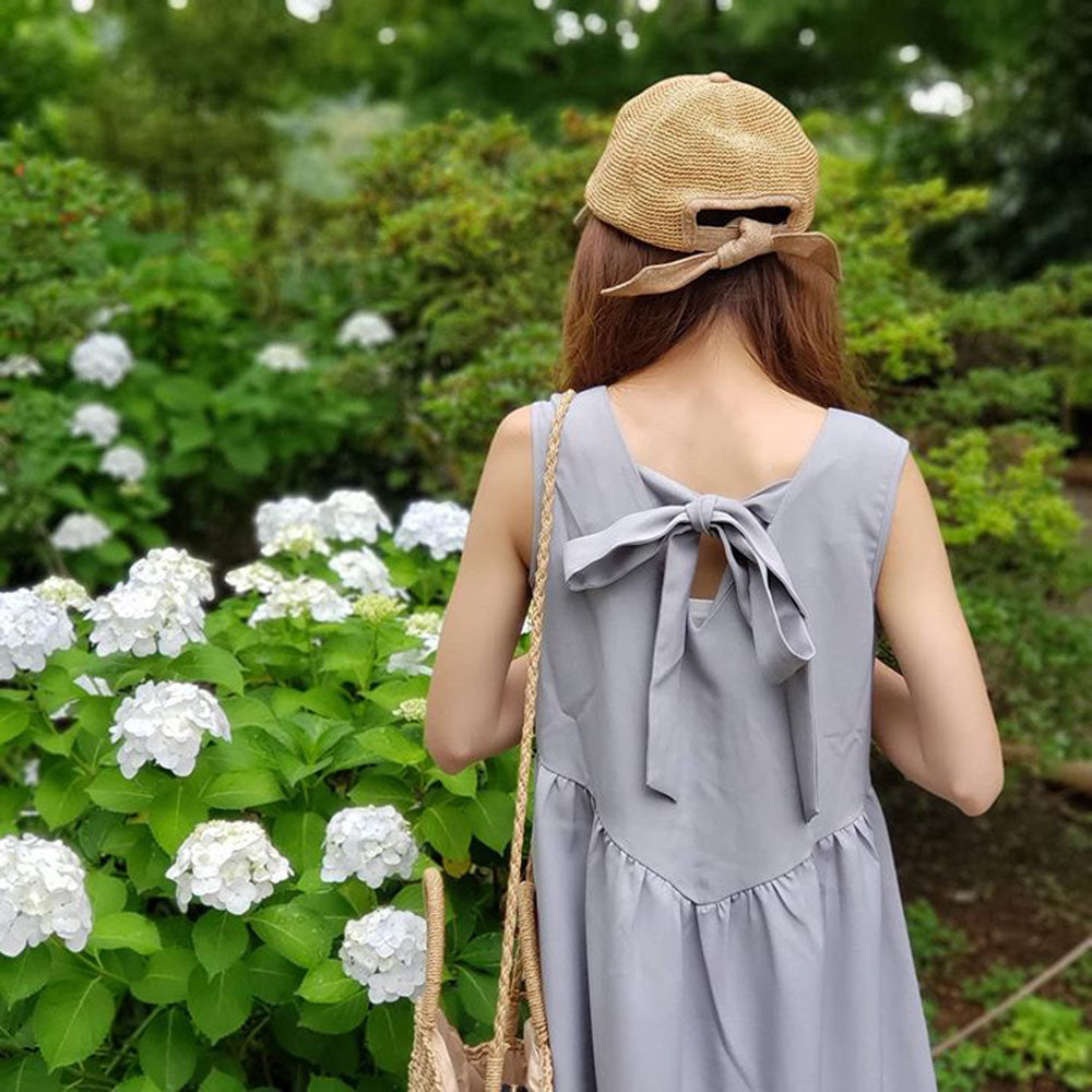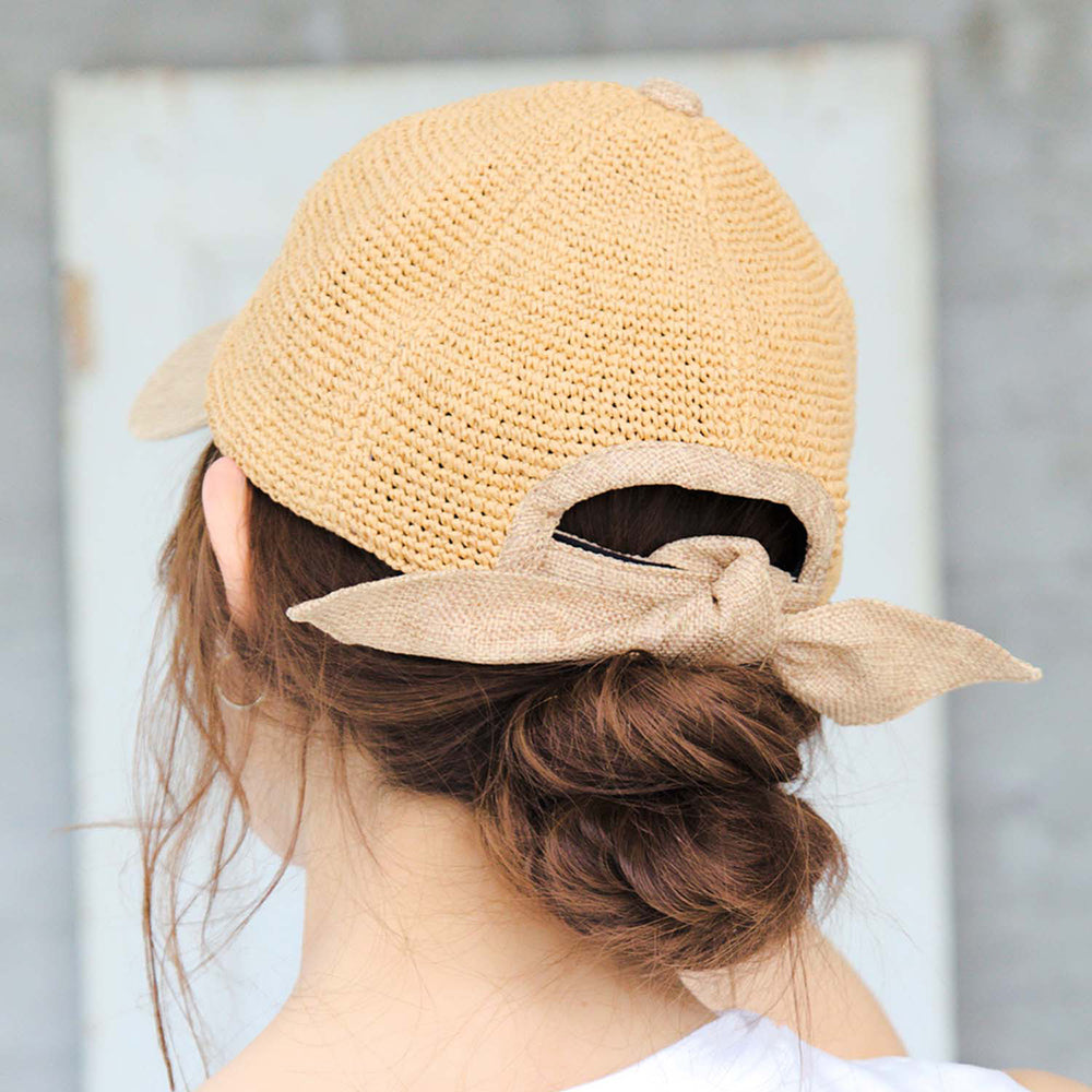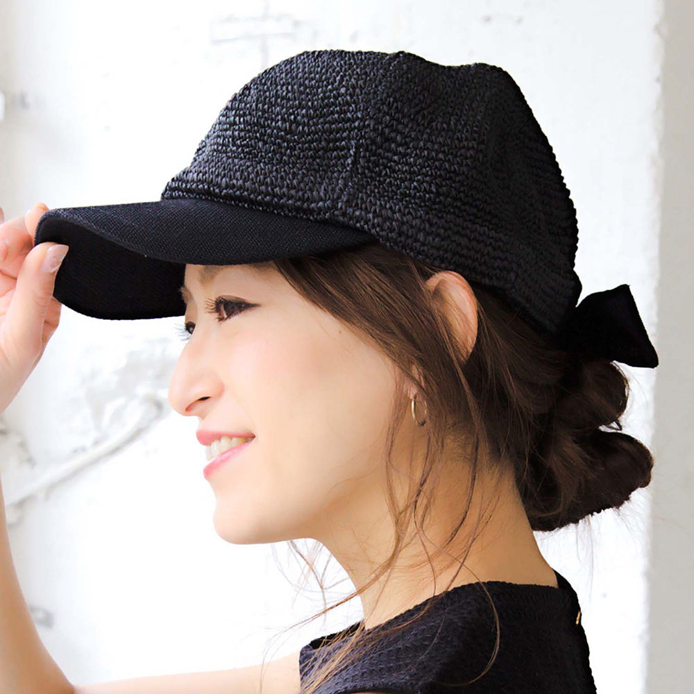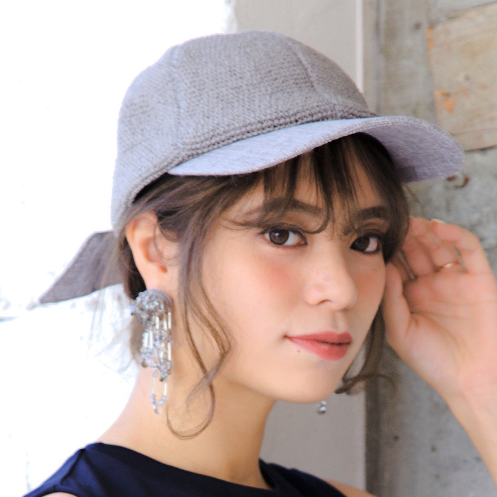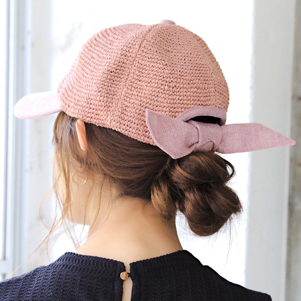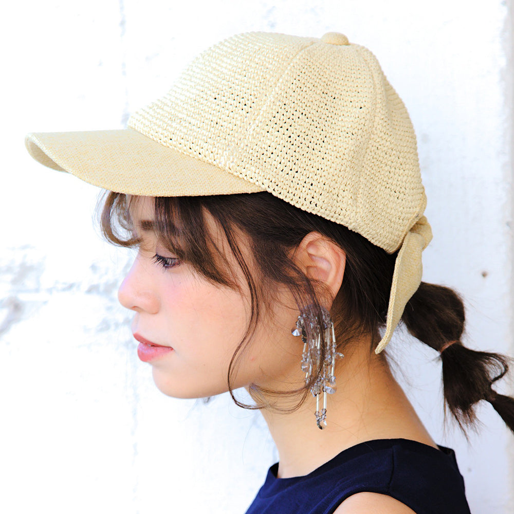 ペーパー素材の軽やかなカジュアルキャップです。細編みの通気性に優れた爽やかなデザインと、バックリボンのポイントが夏のコーデに可愛いアクセントを加えてくれます。リボンは取り外しが可能なので、気分やコーデによって変えられる嬉しい2way仕様です。