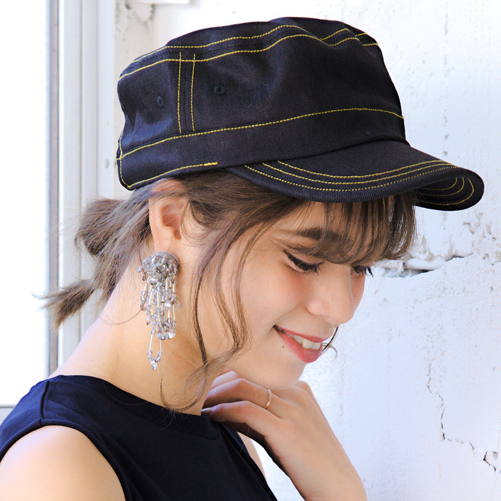 デニム素材のスタンダードなワークキャップ。ヒッコリーデザインもカジュアルコーデはもちろん、はずしアイテムとしても大活躍間違いなし!しっかりめの素材感に、裏地は付けず爽やかな被り心地です。