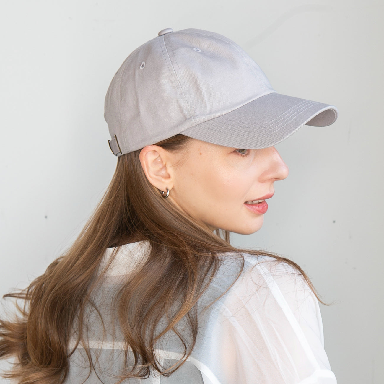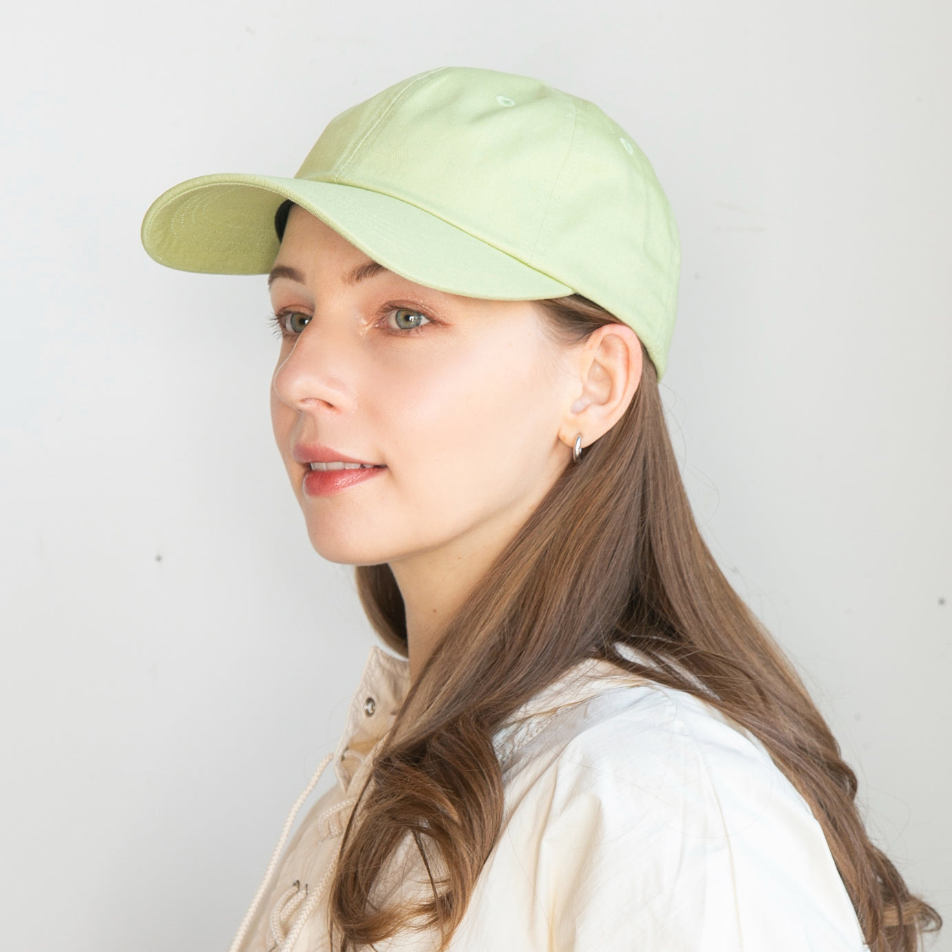 「シンプル・イズ・ベストなカジュアルキャップ」 少し深めつばも長めの設定でカジュアルなのに上品に合わせられる、軽やかな素材に柔らかいカラーのシンプルなキャップです。ワンポイントもなく、無地なのでとてもコーディネートに取り入れやすいです。