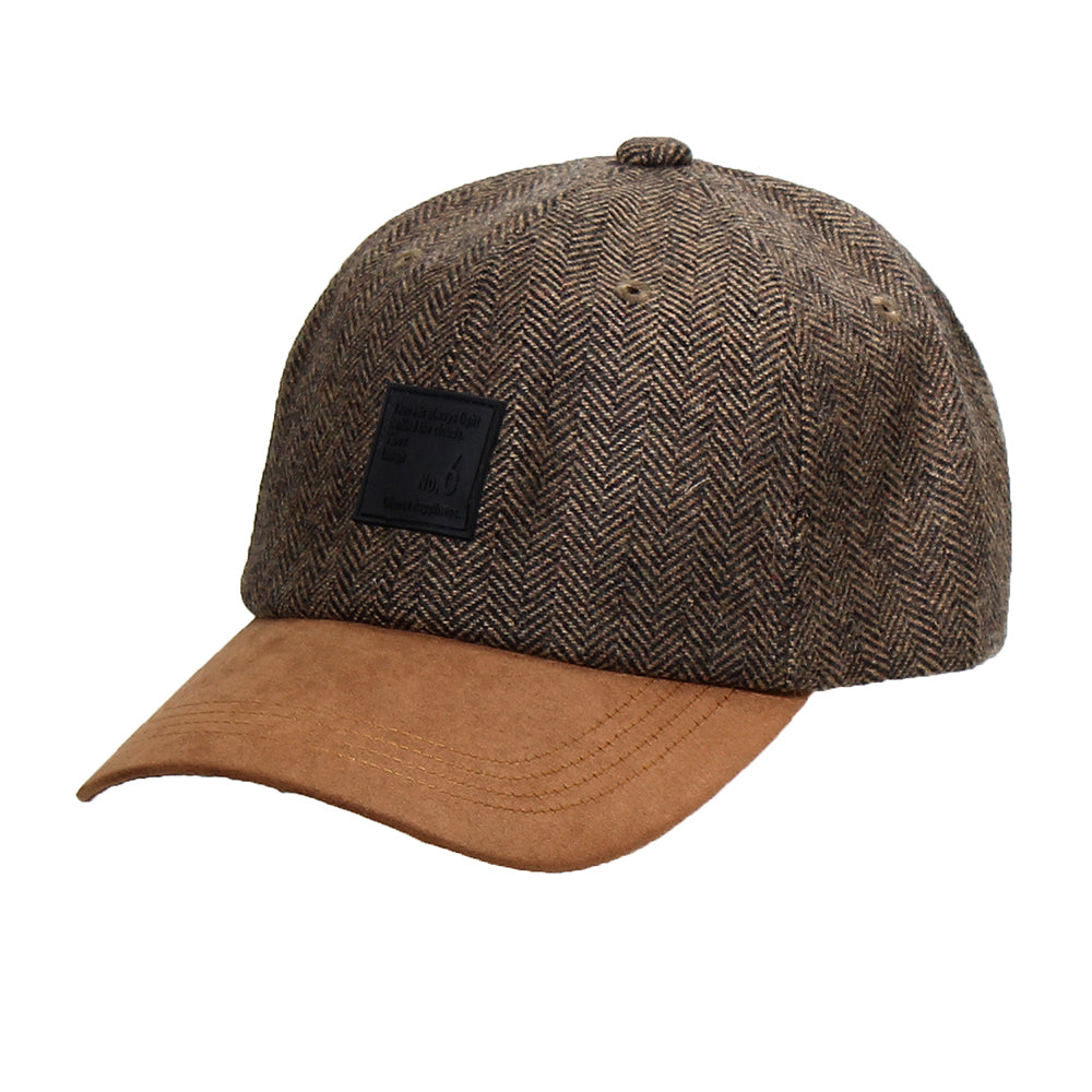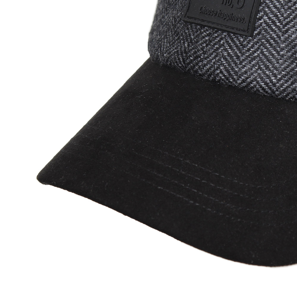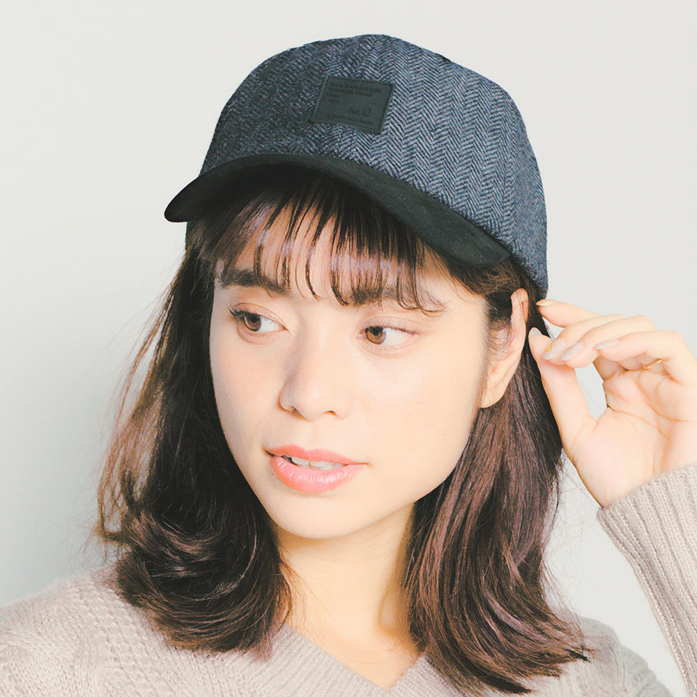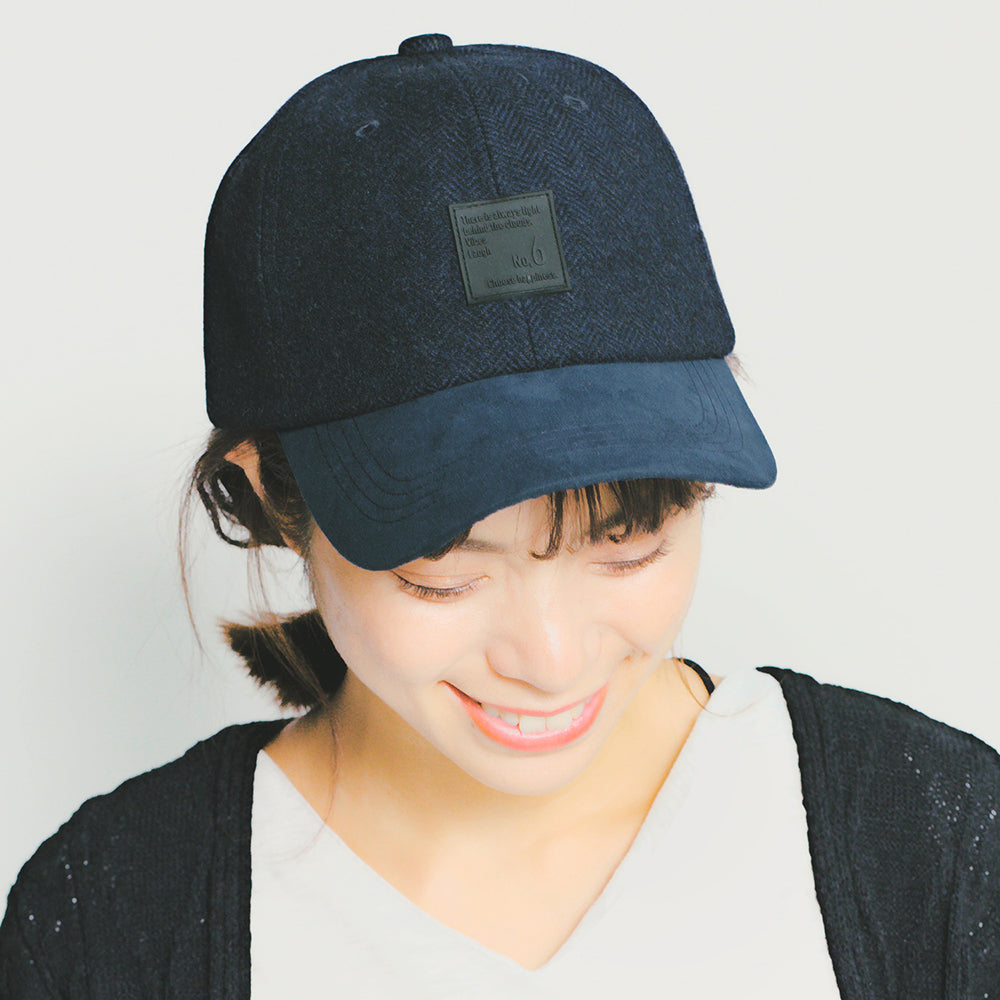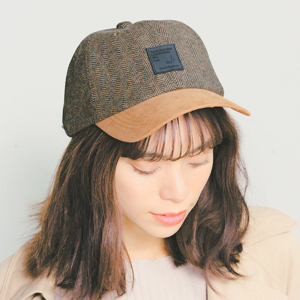 ヘリンボーンとスエードの異素材MIXデザインがお洒落なカジュアルキャップ。フロント部分にはシリコン調のタグがアクセントのなり、カジュアルコーデを引き立てます。秋冬コーデの差し色、ワンポイントにピッタリのお洒落なアイテムです。