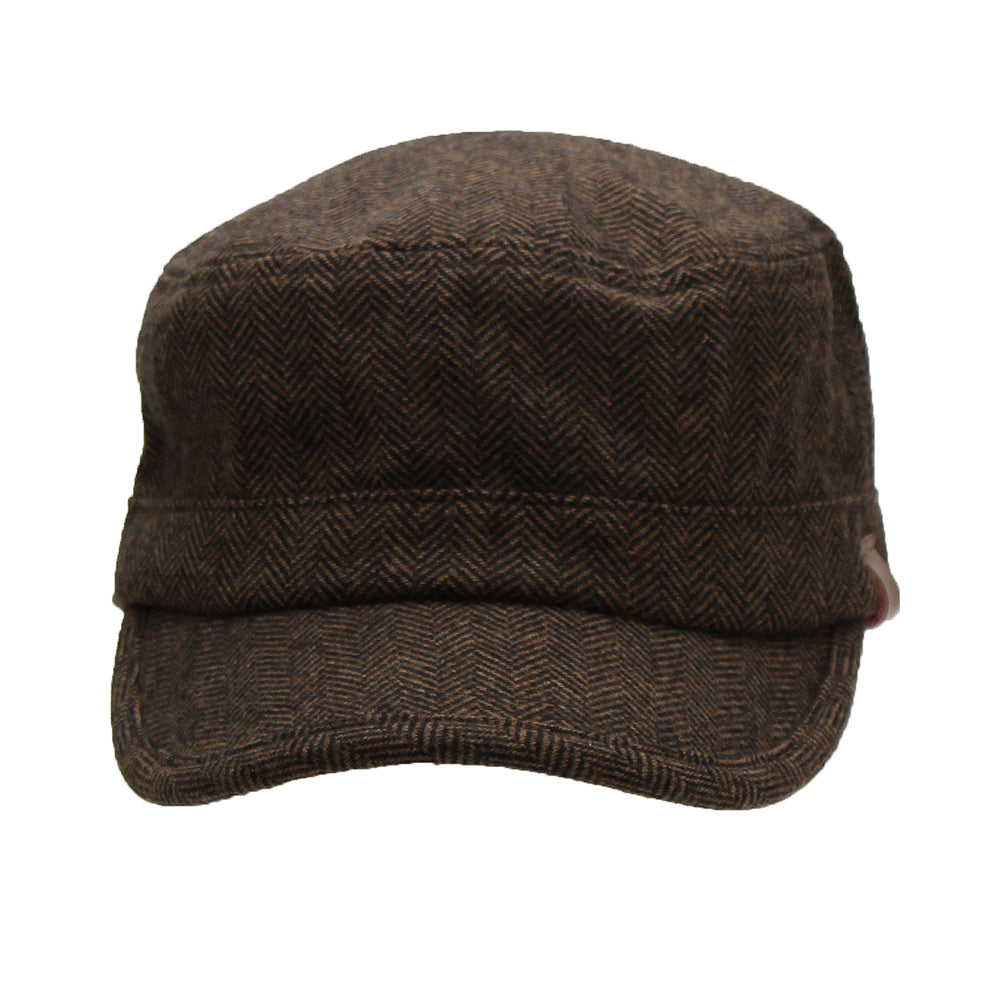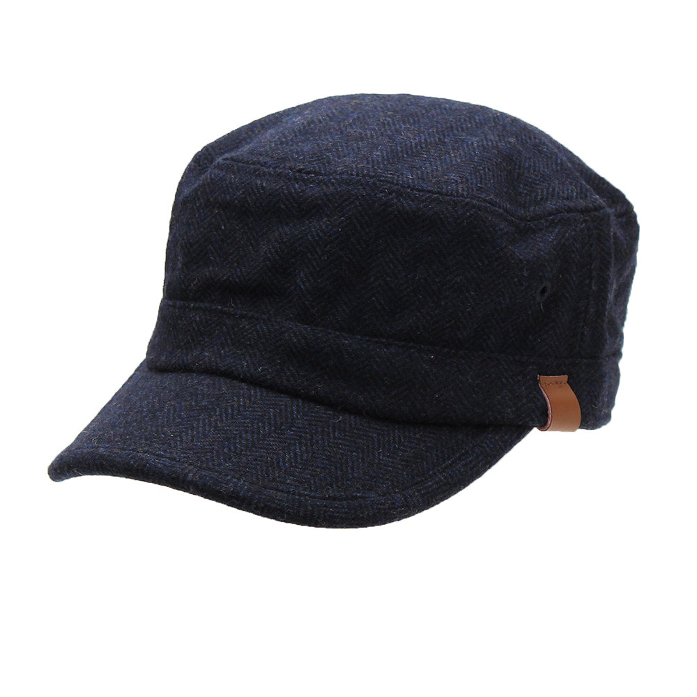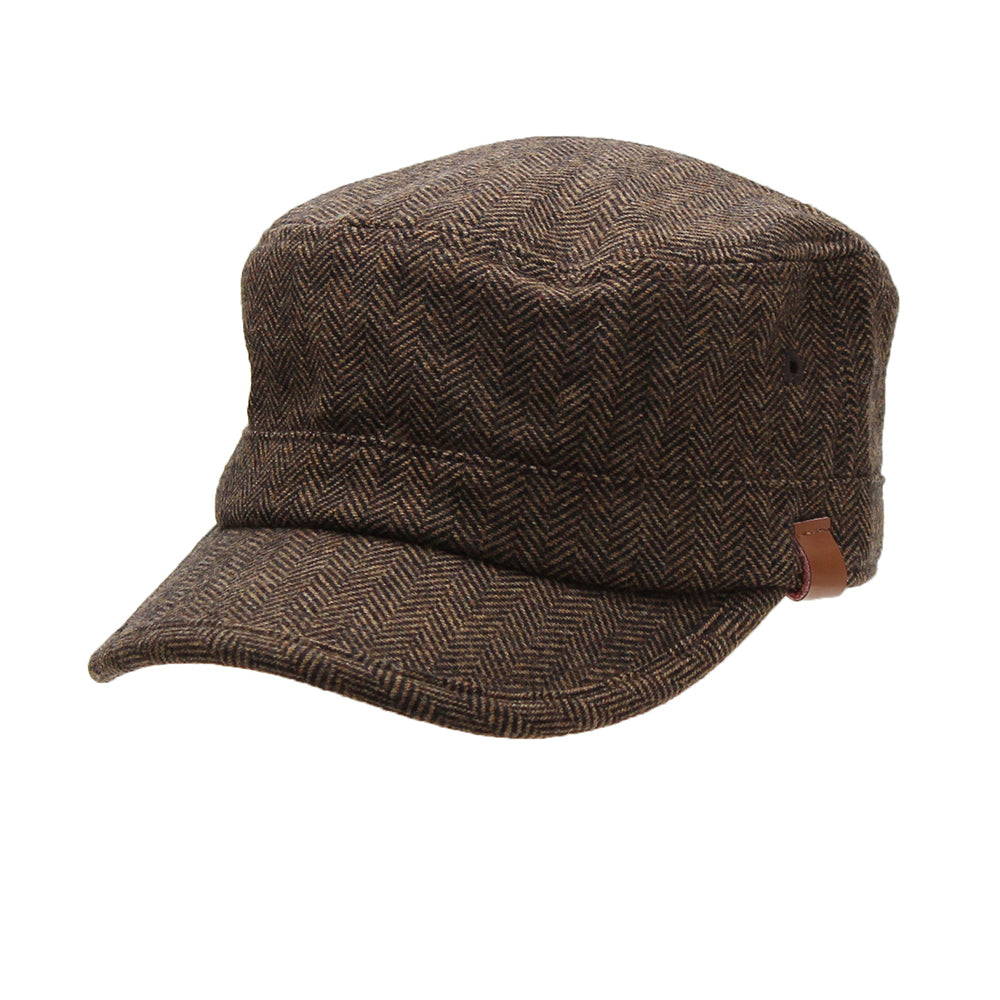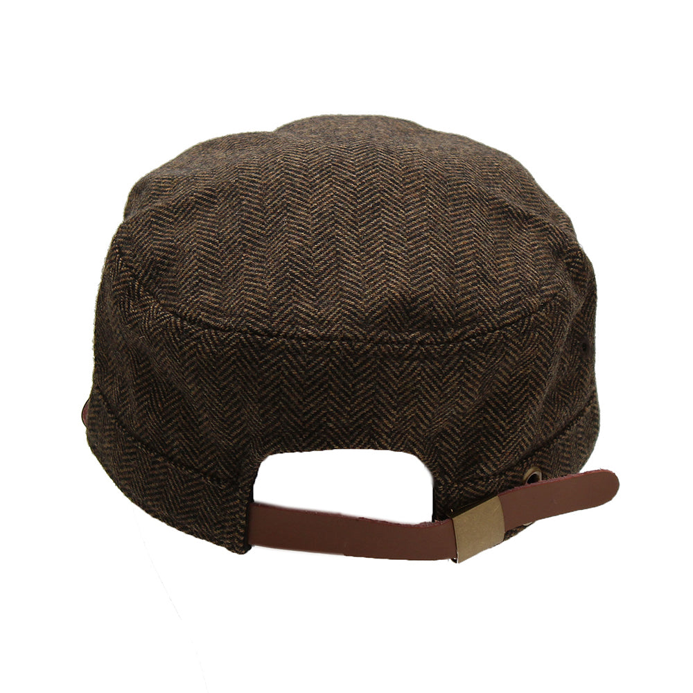 秋冬に活躍してくれる、温かみのあるヘリンボーン柄のワークキャップです。サイズ調節部分はゴールドの金具と皮ベルトでオシャレなおすすめアイテムです。