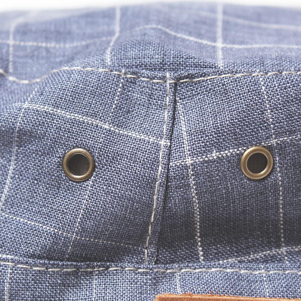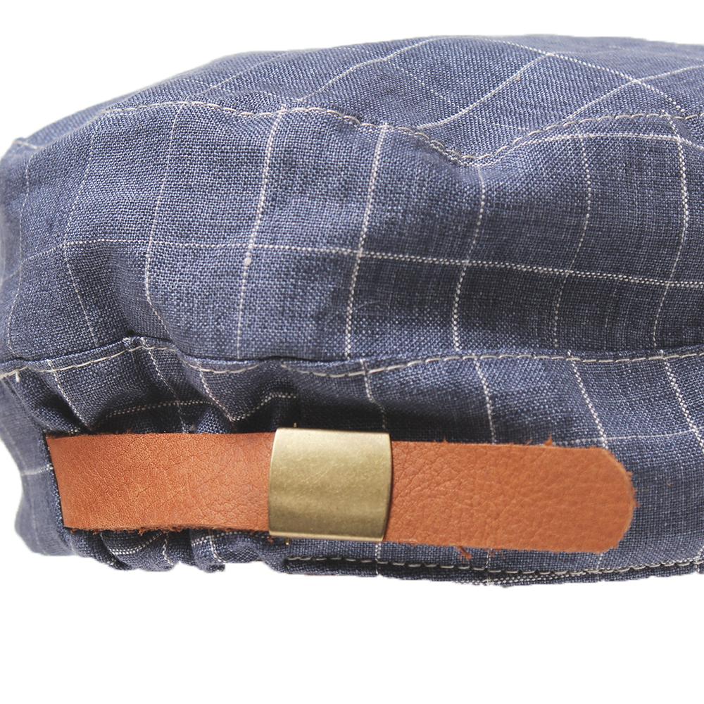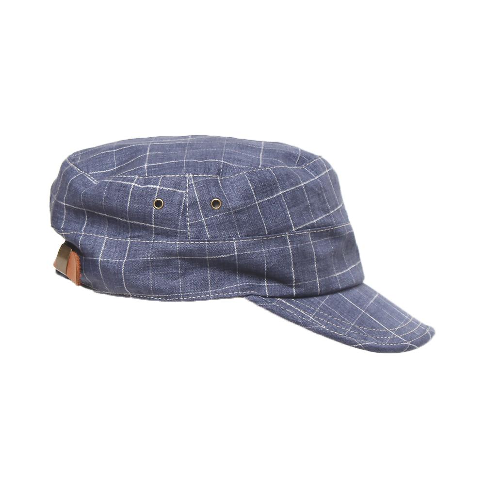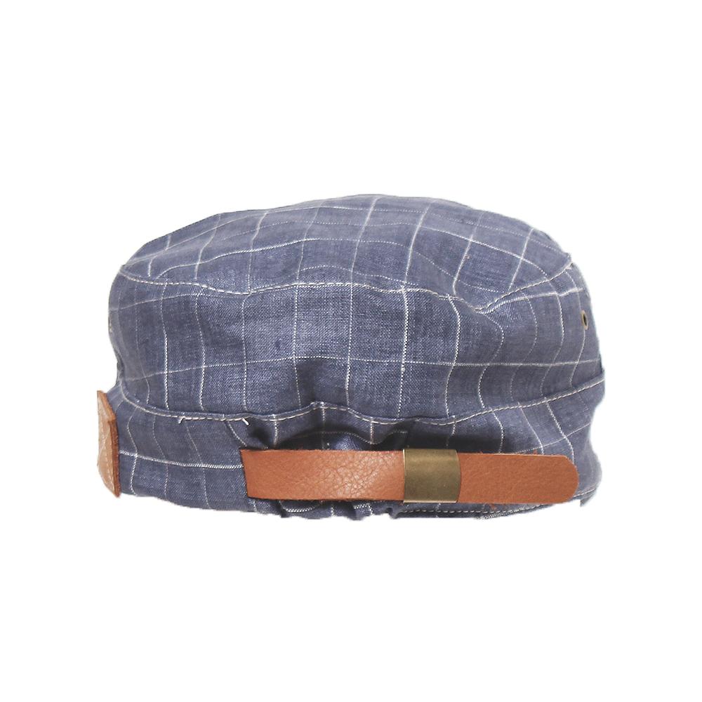 カジュアルコーデのアクセントにピッタリ!リネン100%の柄生地がポイントのカジュアルワークキャップです。後ろのベルト部分にはフェイクレザーを使用し、サイドのハトメもこだわりを感じさせるデザインポイントです。