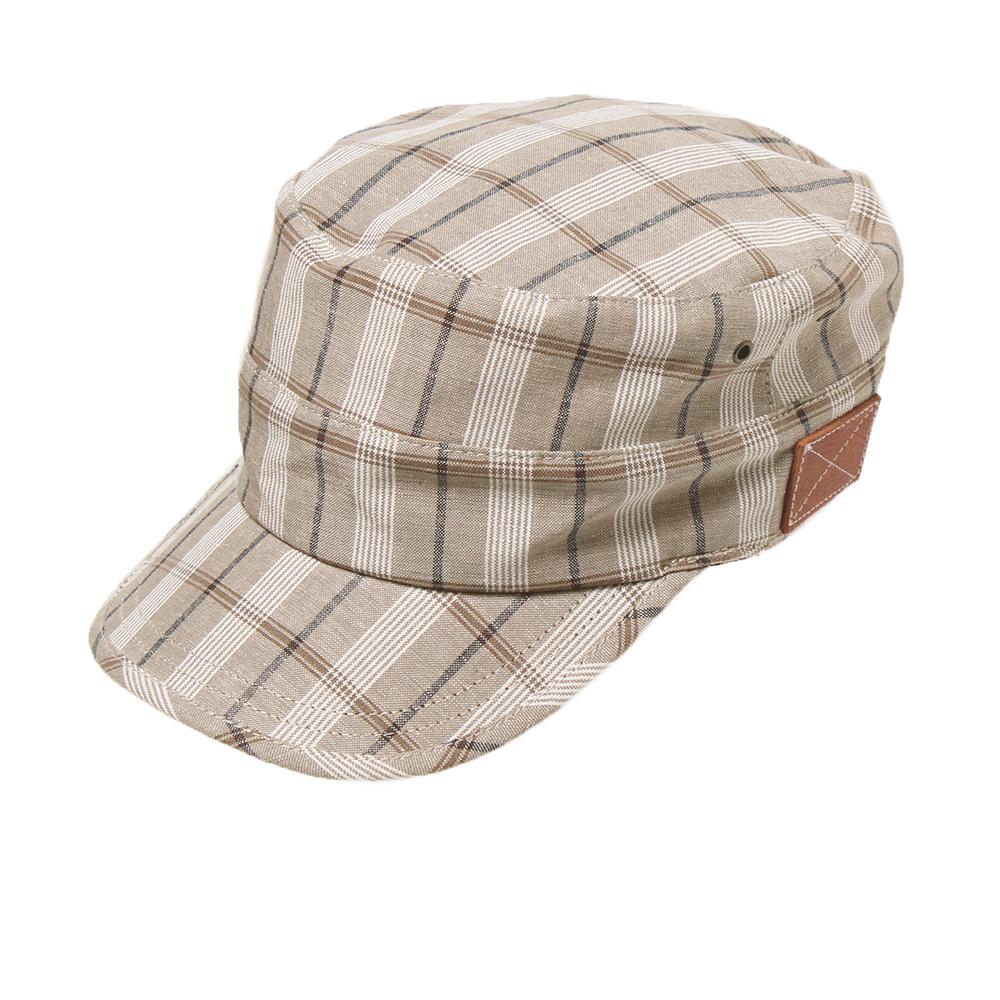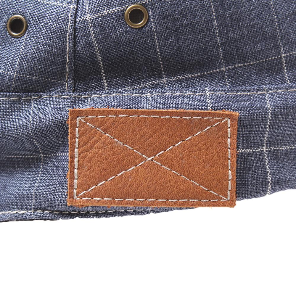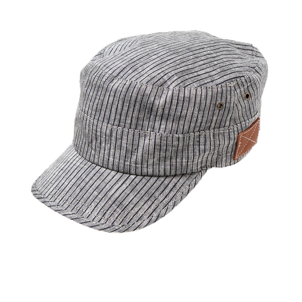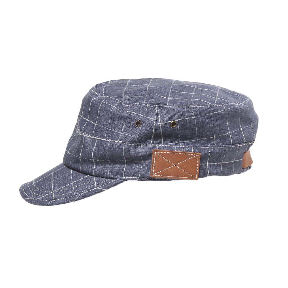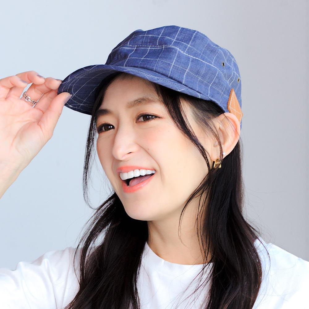 カジュアルコーデのアクセントにピッタリ!リネン100%の柄生地がポイントのカジュアルワークキャップです。後ろのベルト部分にはフェイクレザーを使用し、サイドのハトメもこだわりを感じさせるデザインポイントです。