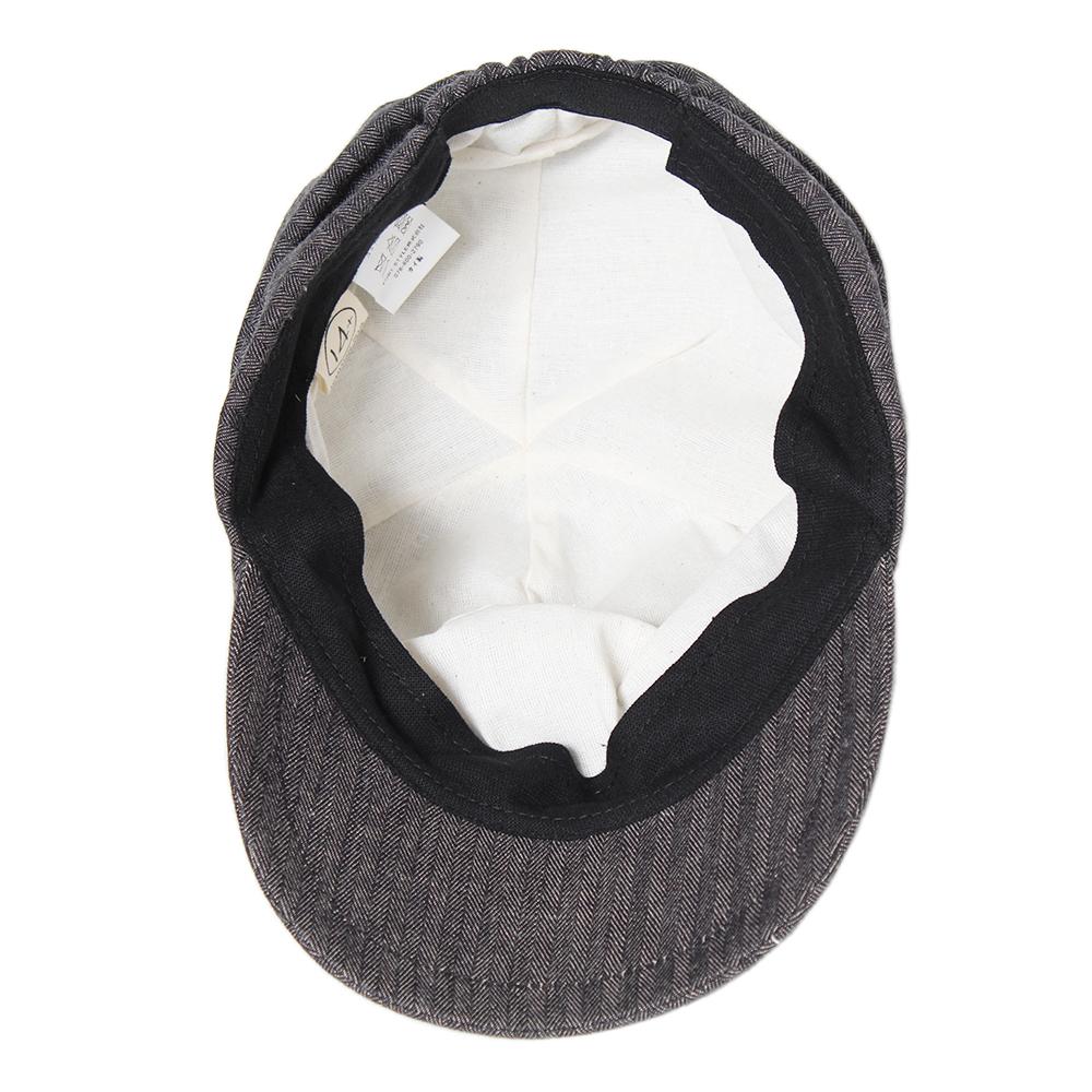 ヘリンボーンの柄行が大人カジュアルなワークキャップです。後ろ部分はゴム仕様で伸縮性がありますので、フィット感のある被り心地!サイドにかけてクシュとしたデザインは、頭の形をキレイに見せてくれます。