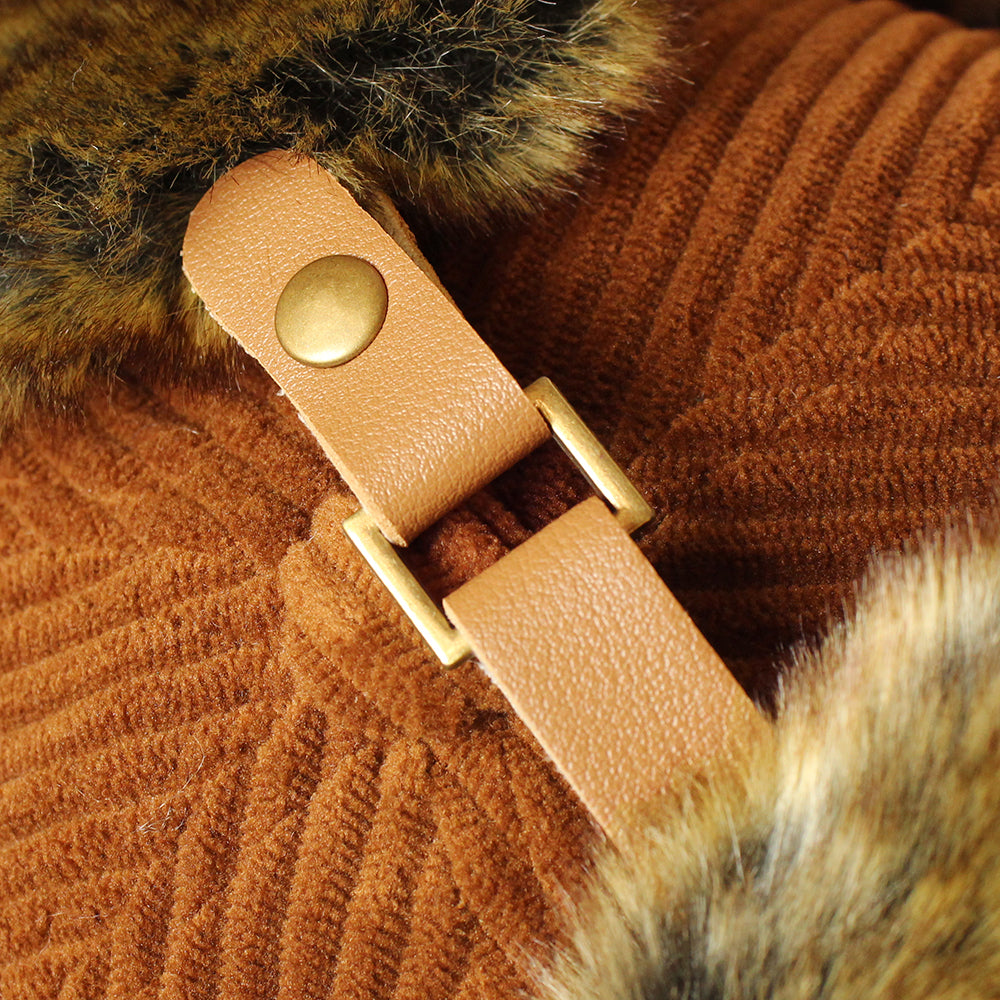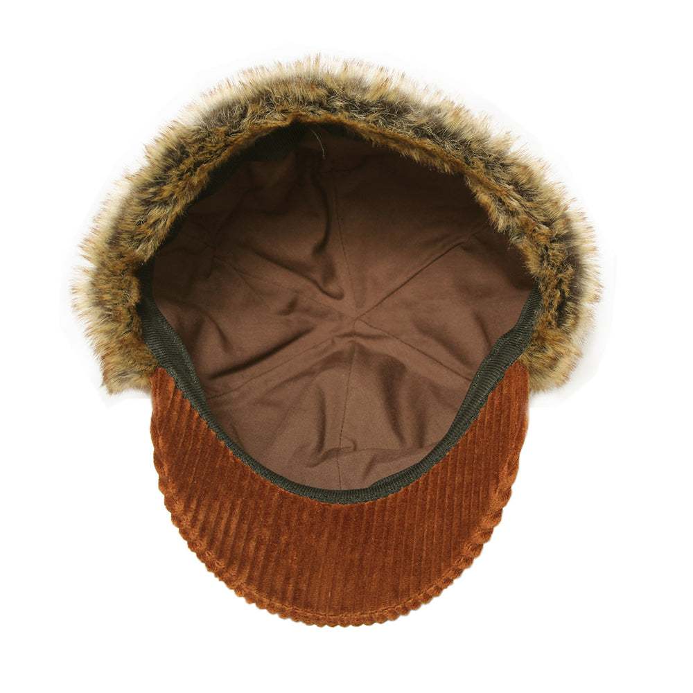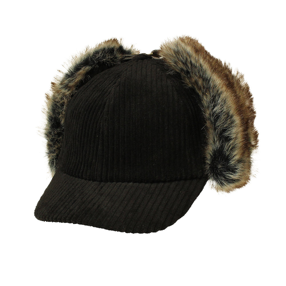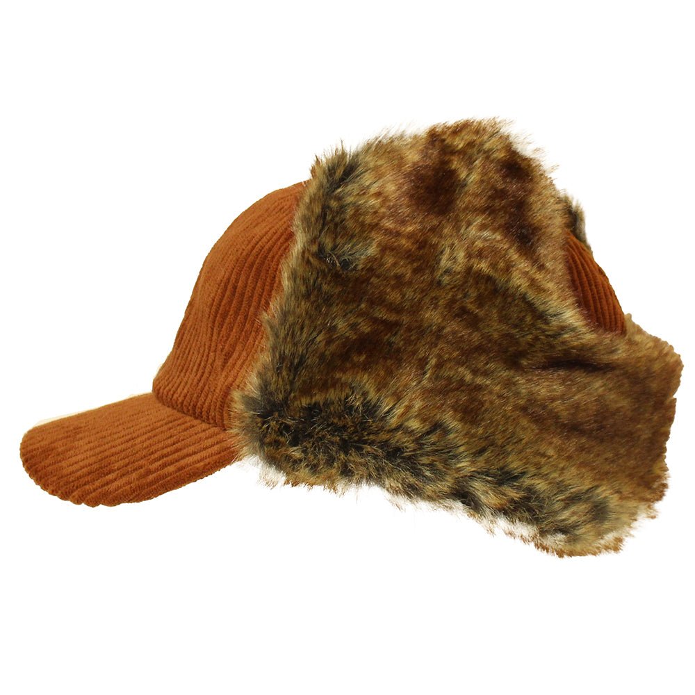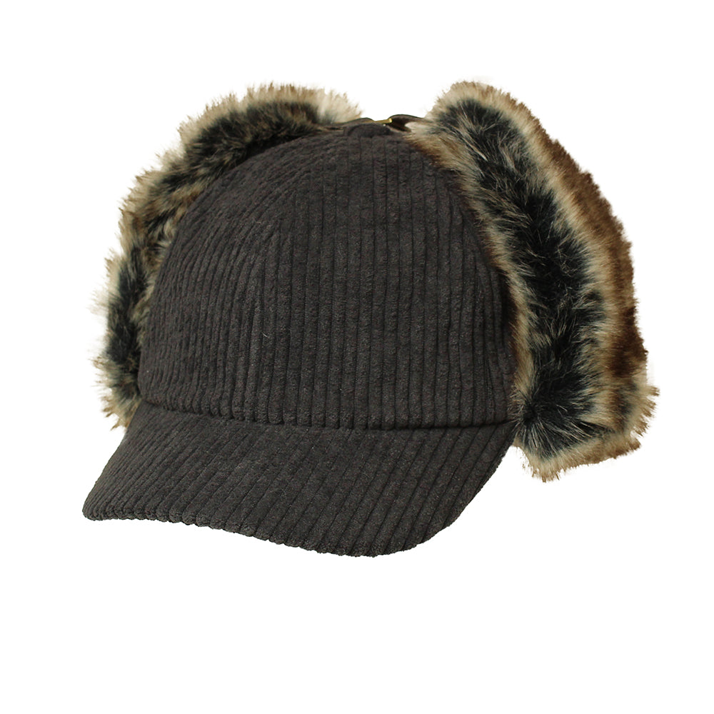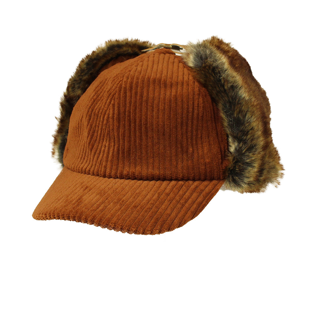 エコファーを使ったパイロットキャップ風の耳あて付きキャップです。少し太幅のコーデュロイ素材を使用し、存在感もありながら合わせやすいデザイン。一点投入でおしゃれ上級者なコーデが完成します!耳部分を留めるフェイクレザーのベルトデザインも、カジュアルスタイルの可愛いアクセントに。内側にあるすべりの裏側には、サイズを調節して頂けるテープが付いていますのでご自分のサイズ感で被って頂けます。