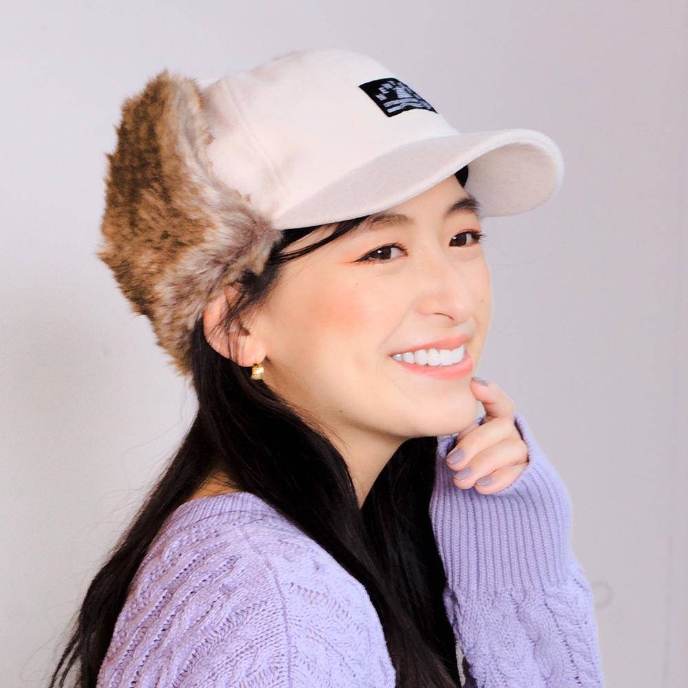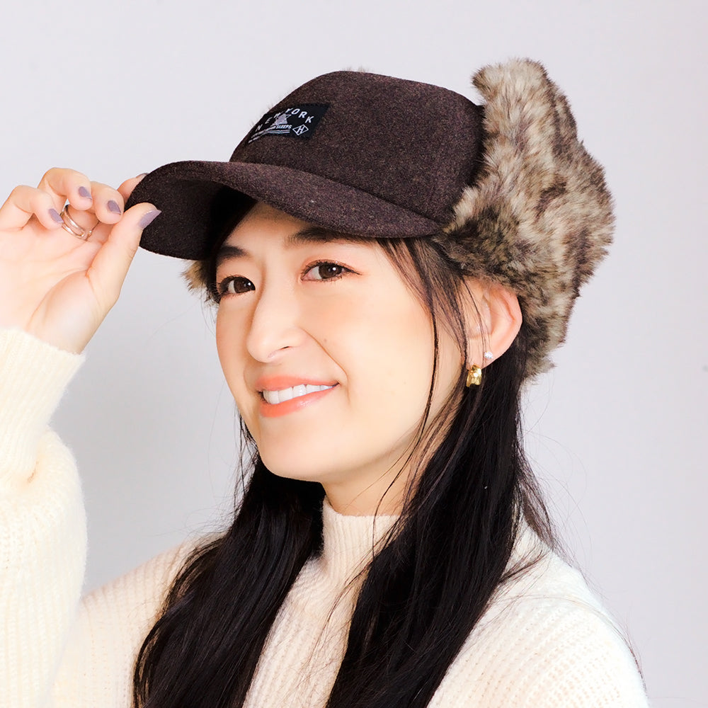 エコファーを使ったパイロットキャップ風の耳あて付きキャップです。温かみのあるメルトン素材に、フロントタグがカジュアルなデザイン。合わせやすく保温性にも優れていますので、冬のアウトドアやキャンプにもおすすめ!内側にあるすべりの裏側には、サイズを調節して頂けるテープが付いていますのでご自分のサイズ感で被って頂けます。