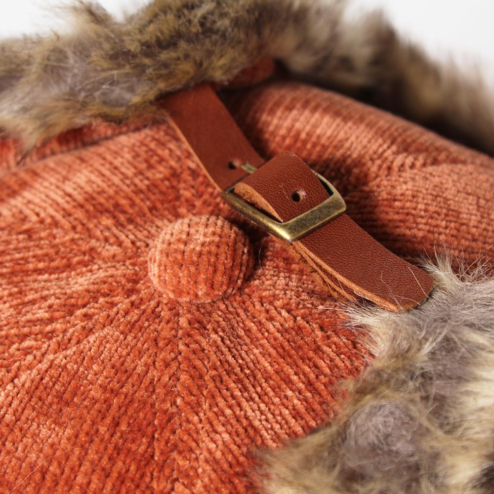 フェイクファーとモール糸を使用したフライトキャップです。上品な光沢感のあるモール糸を使用していますので、大人なカジュアルスタイルにも合わせやすい!防寒にも優れ、冬のアウトドアやキャンプなどにもおすすめのアイテムです。内側にあるすべりの裏側には、サイズを調節して頂けるテープが付いていますのでご自分のサイズ感で被って頂けます。