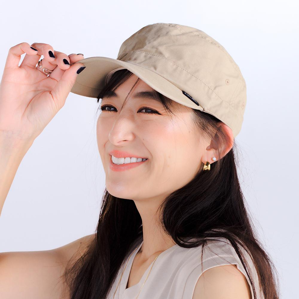 カジュアルスタイルの定番アイテム!サイドのツバ部分のさり気ないタグデザインがワンポイント。柔らかいコットン素材で折りたたんでの持ち運びも可能です。