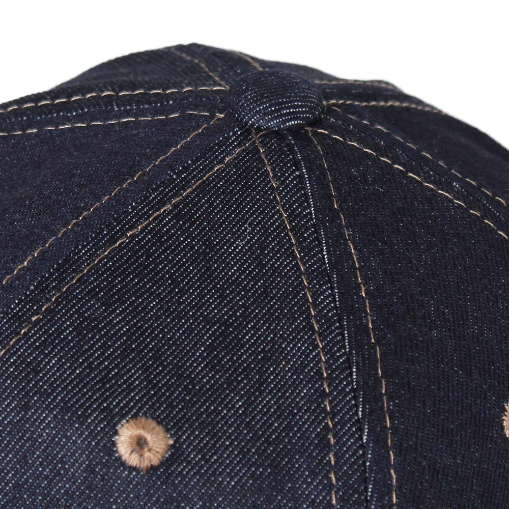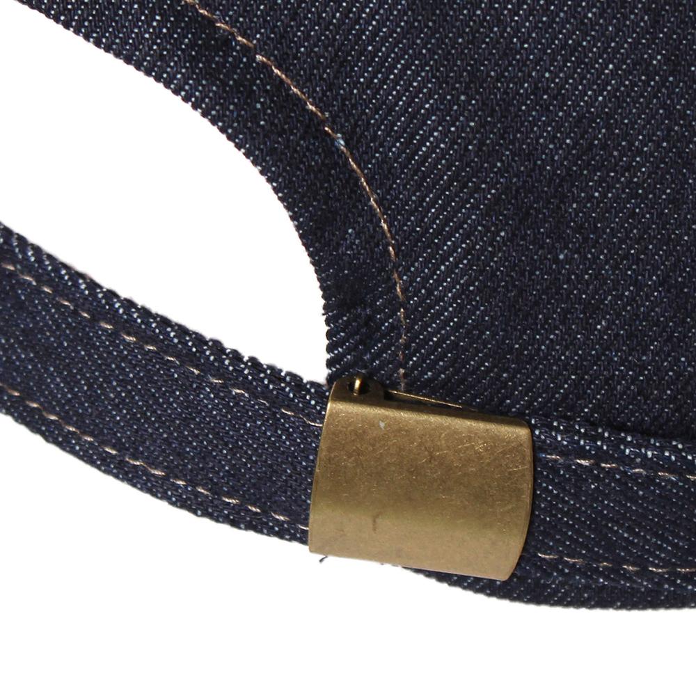 しっかりとした素材感のデニム生地のカジュアルキャップです。フロントの筆記体刺繍と、本体の刺繍と同色のステッチがアクセント!主張し過ぎない刺繍のデザインなので、どんなカジュアルスタイルにも合わせやすいのも魅力です。