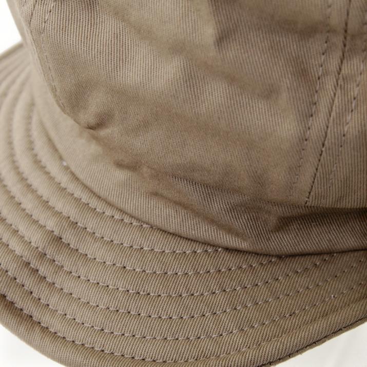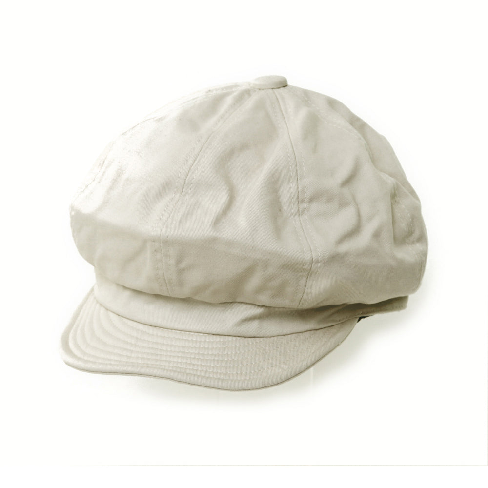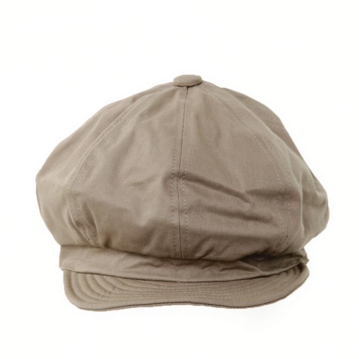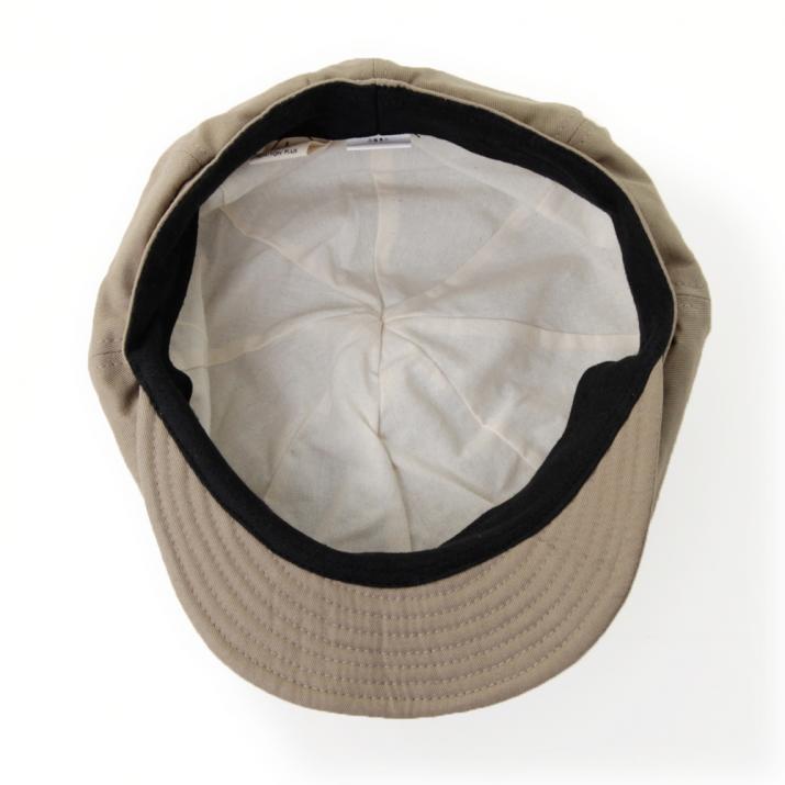 シンプル&ベーシックなデザインで、どんなコーデにも合わせやすいキャスケットです。柔らかい中厚手の生地で、くしゅっとボリュームのあるシルエットが魅力です。帽子自体はやわらかく、くるくる折りたためば持ち運びにも便利です。裏地には織目の荒い生成りの生地を使って、さらっと爽やかな被り心地です。