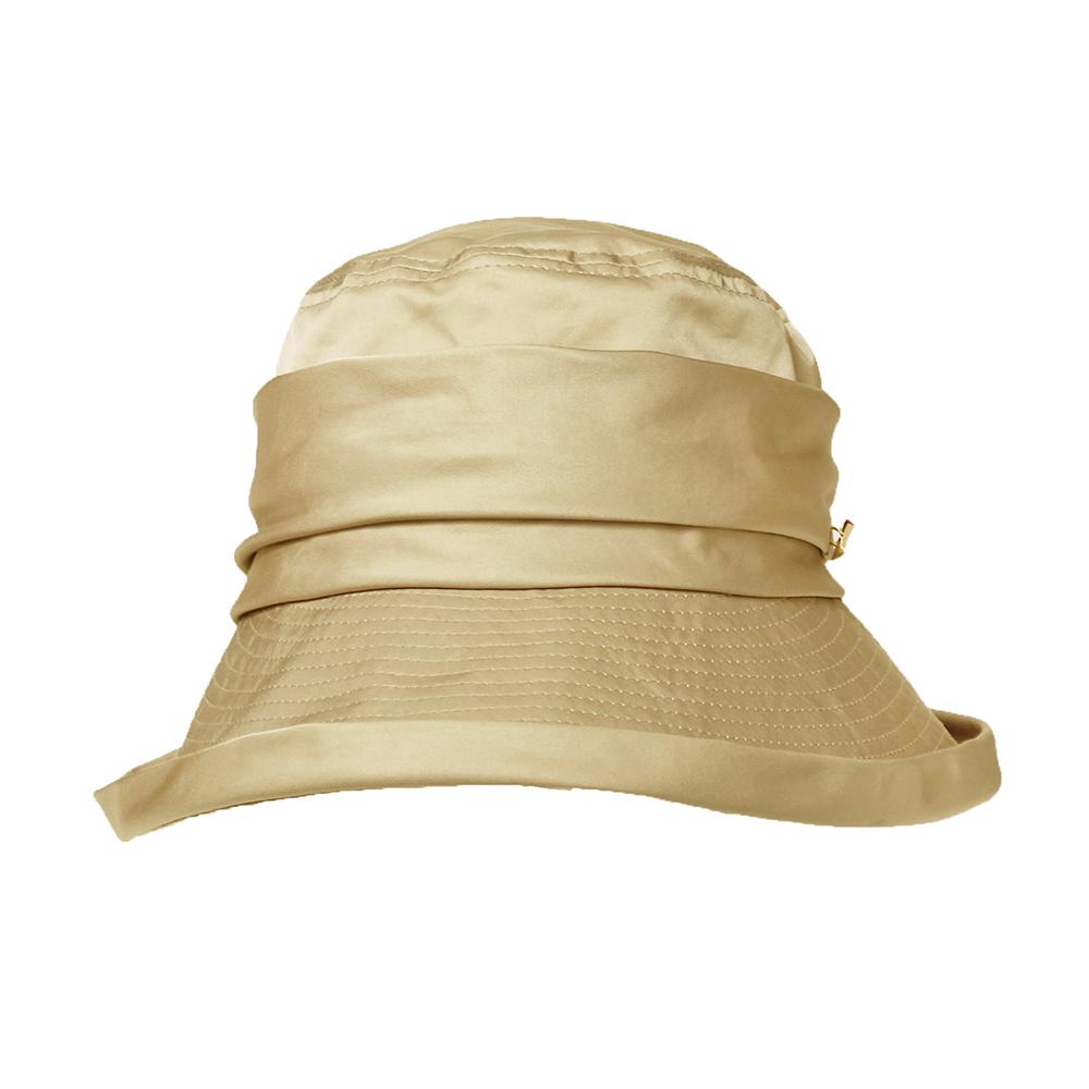 艶感のある素材が上品な雰囲気のジョッキーキャスケット。つばが広めなので小顔効果も期待でき、紫外線もしっかりとカット!深めのキャスケットシルエットで頭の形をキレイに見せ、小顔効果も期待できます!とても軽く柔らかい素材感なので、折りたたんでの持ち運びにも便利です。