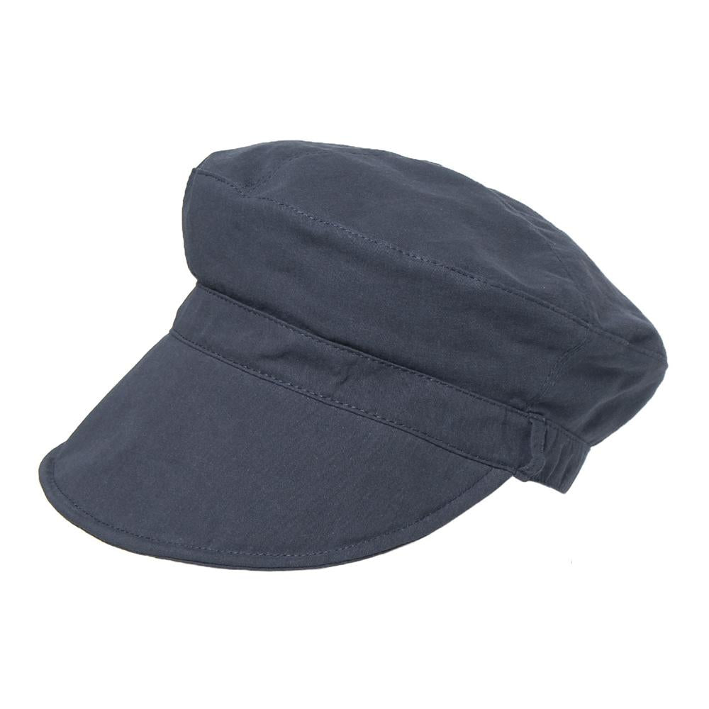 コットン100%のマリン型キャスケット。ツバが長めの設定なので紫外線をしっかりガード!柔らかい素材感とツバは芯無しなので折りたたんでの持ち運びにも便利です。ツバ先にはワイヤーが入っていますので、お好みの形に調節して頂けます。