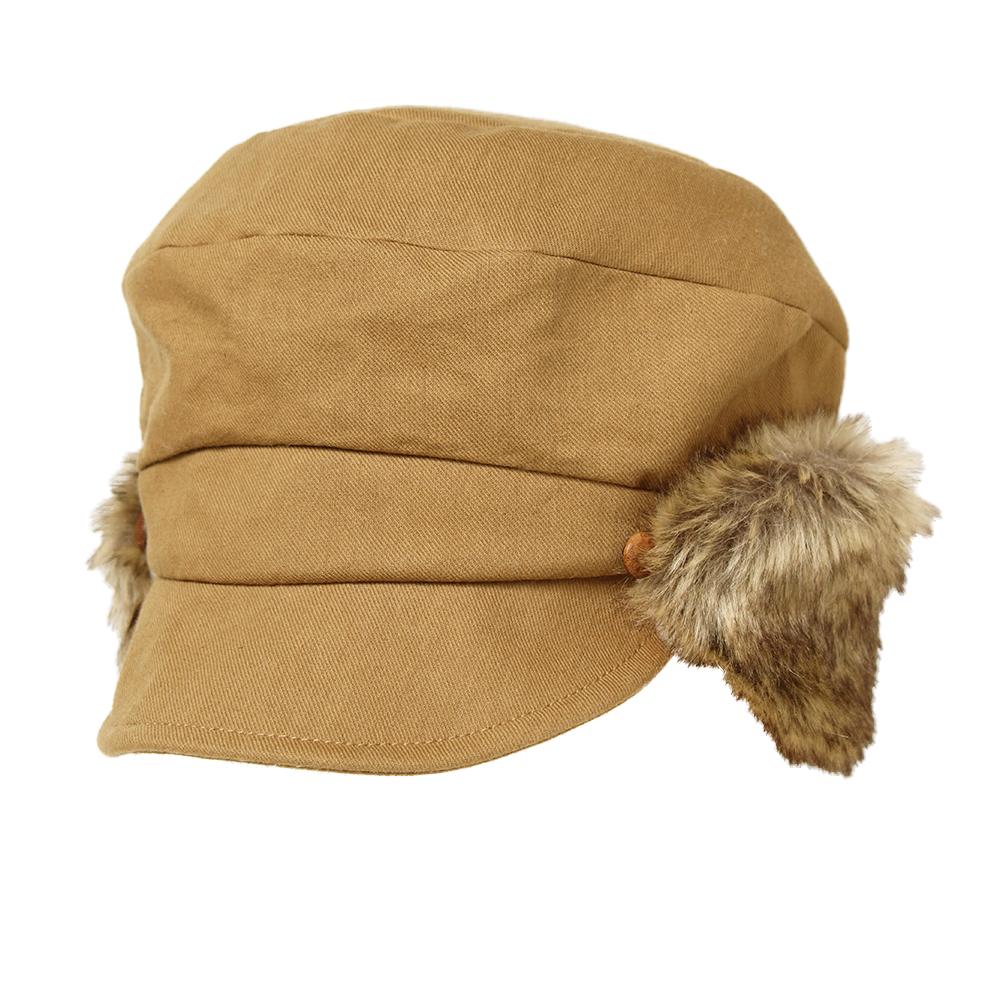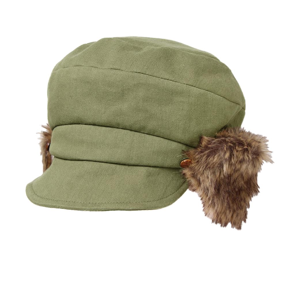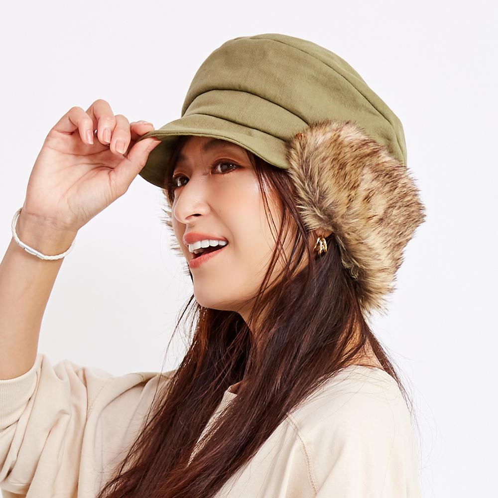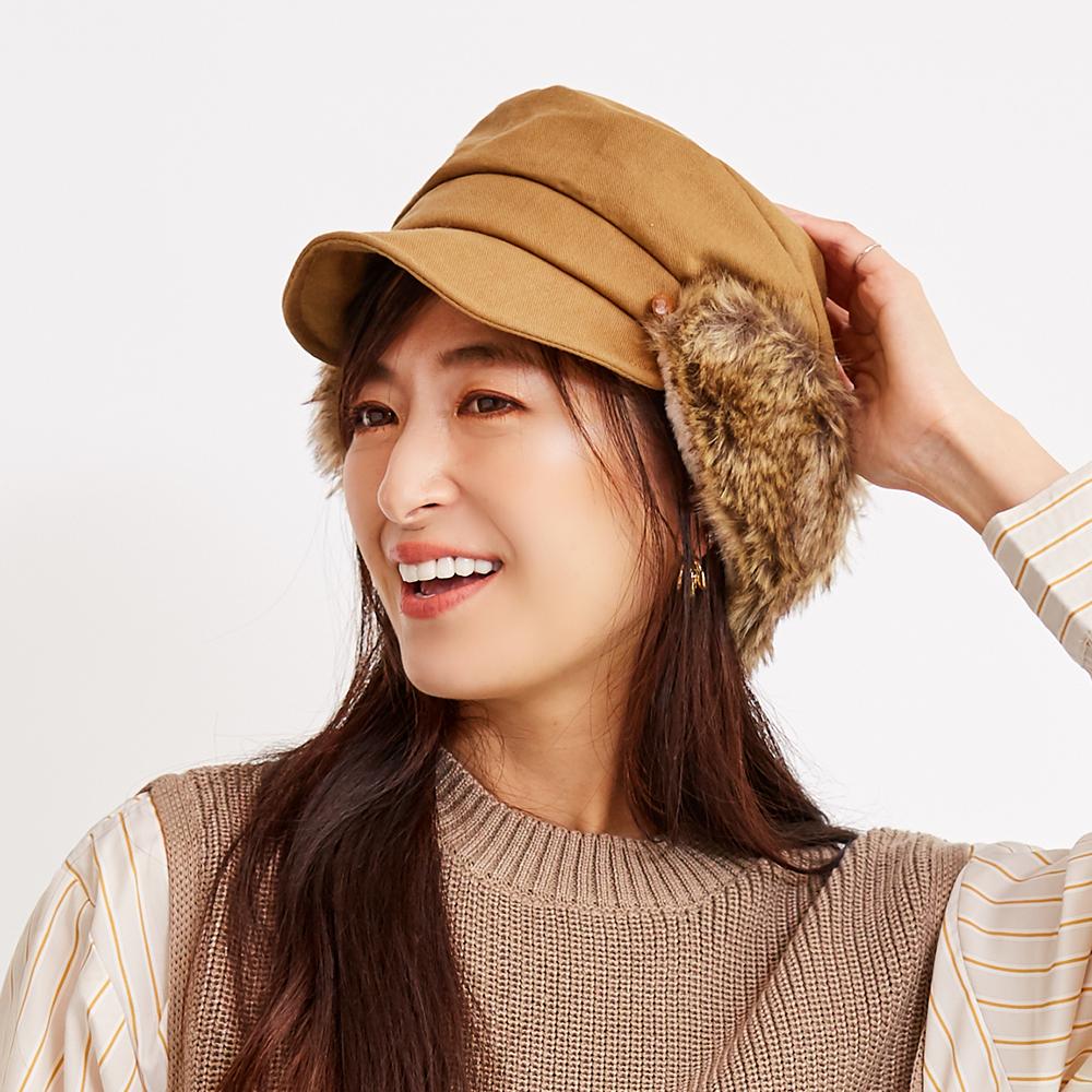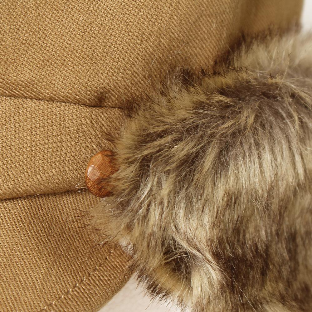 取り外し可能なファーが付いた見た目も温かいキャスケット。ファーはボタンで取り外しが可能で、付けていれば耳が覆われるので温かい。もちろんファーを取り外して柔らかくてシンプルなキャスケットとしてもお使いいただけます。内側のアジャスターでサイズ調節可能。