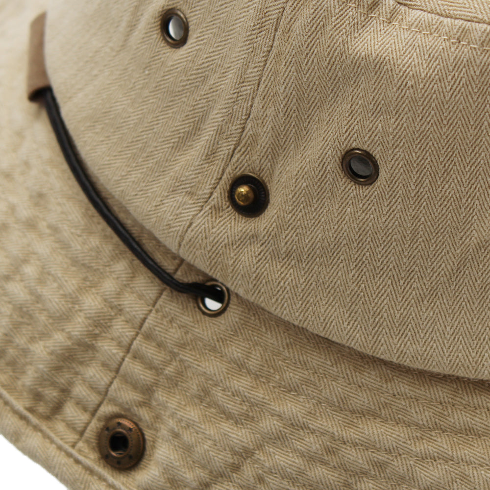 コットン100%で優しい仕上がりのアドベンチャーハットです。春先から秋冬まで使いやすい、落ち着いた色合い。レザー調のアゴ紐が全体のデザインを引き締めます。サイドの留め具でテンガロン風にもなる2way使用。手洗い可、サイズ調整可、UVケアと機能性も十分です。◆親子ペアアイテム(ペア商品コード:khat0095)
