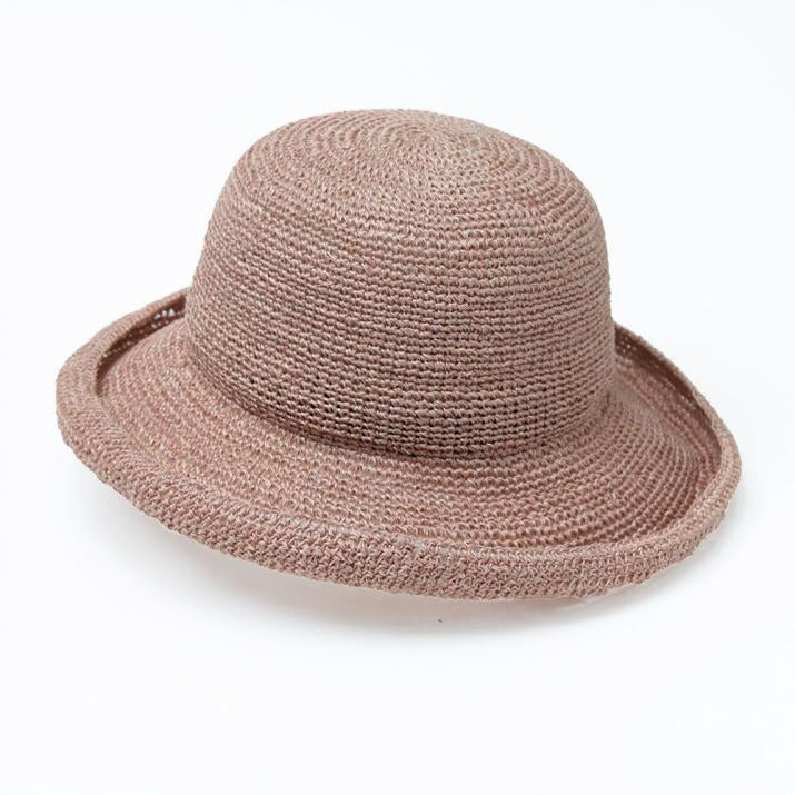 高級素材アバカ(マニラ麻)を使用したPREMIUMつば広ハット。アバカは色染めが難しく、何度も職人が調整して染め上げた14+限定のオリジナルカラー。麻ならではのナチュラルな素材感は残しつつ、サーモ糸と一緒に編み上げることにより程よい光沢とニュアンス調の絶妙な色味を作り上げた、他にないとても上品なカラーです。風通しがよくナチュラルな気品は、手編みだからこそ表現できるもの。細かくて繊細なラインを手作業で丁寧に作っておりますので、一日に生産出来るのはわずか数個。つば広デザインでUVケアもバッチリな14+オリジナルの特別なハットです。