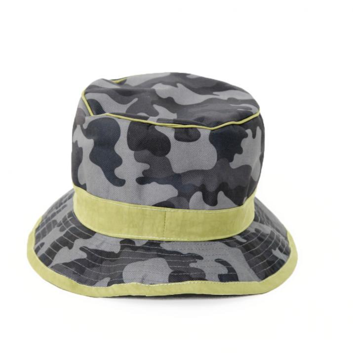 トレンドのバケットハットに、迷彩柄をプラスした個性派ハットです。ハリのある素材なので、型崩れしにくく被りやすくなっています。夏フェスやキャンプ、アウトドアにもおすすめです。帽子のトップにはゆとりがあり、サイズも大きめ。サイズ調整機能もついているので、どんな方にも被って頂けるデザインです。