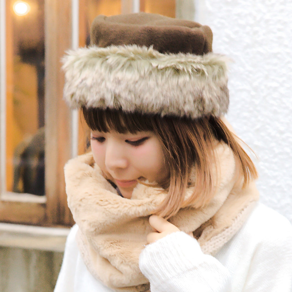 贅沢に使ったフェイクファーで、華やかな印象のロシア風トーク帽です。帽子本体は面の粗いフェルト風のポリエステル生地。丈夫で軽く、ずっと被っていたいほどの着心地。ファーはフェイクだから、扱いやすさも抜群。裏地はツヤのある生地で、サラリとした肌触りが快適です。普段のコーデに合わせればそれだけでおしゃれになれる、ヘビロテ必須アイテムです。