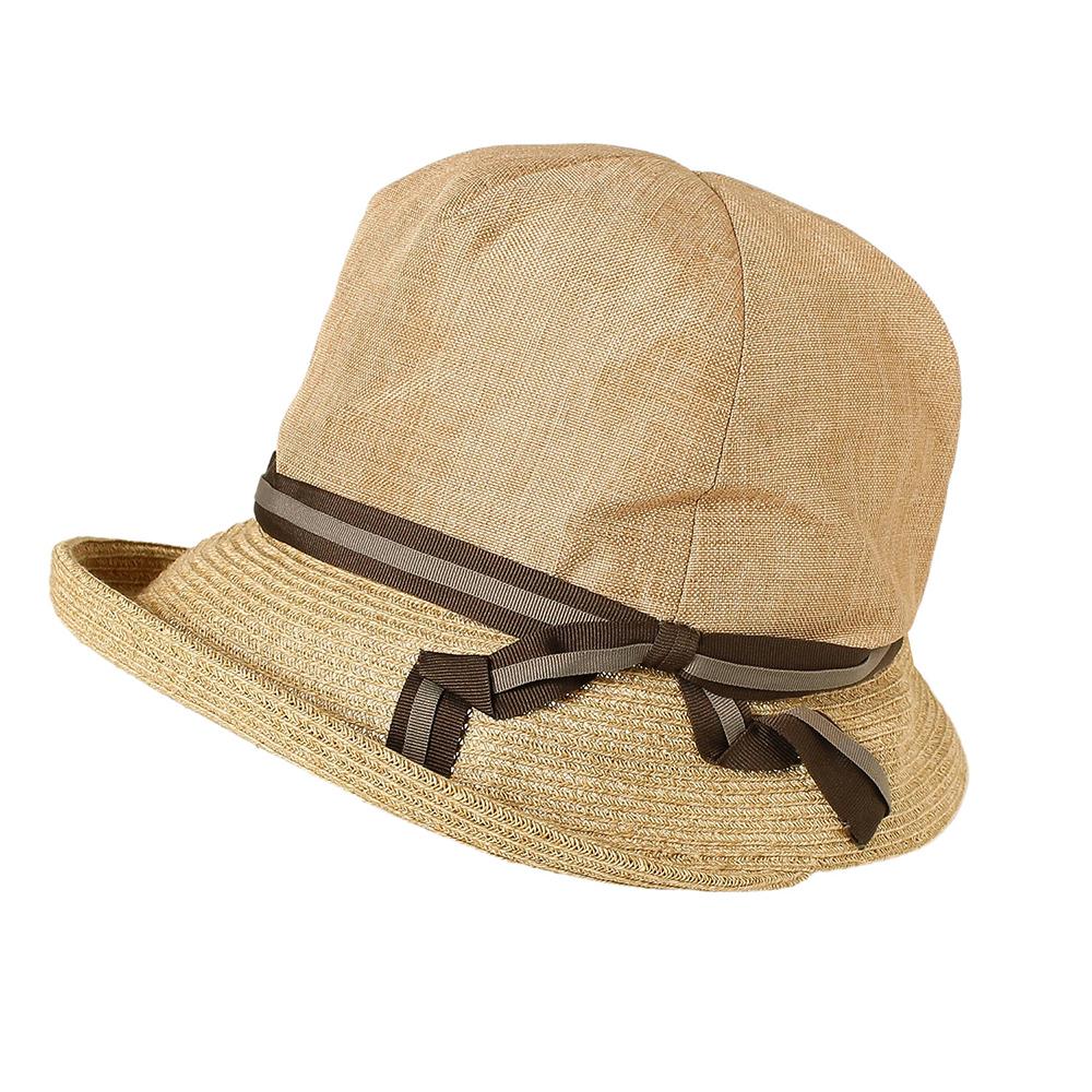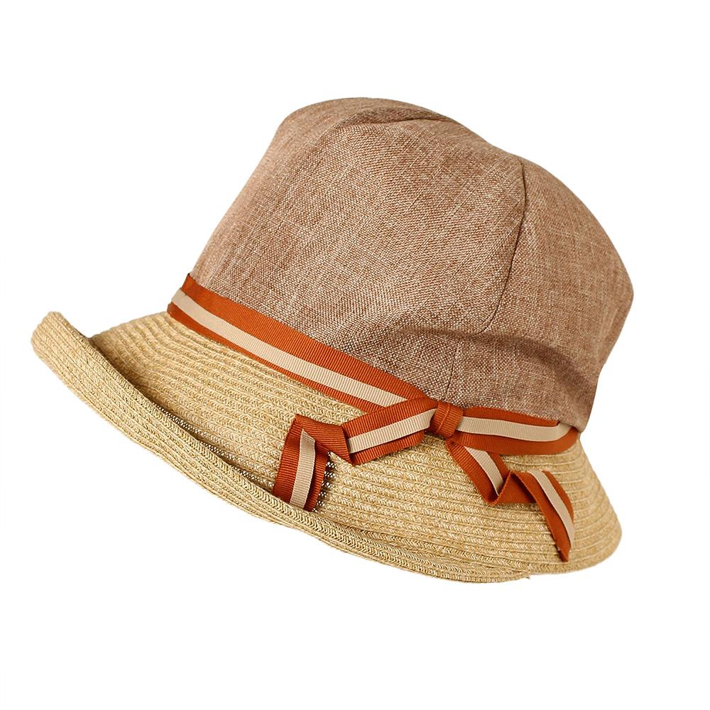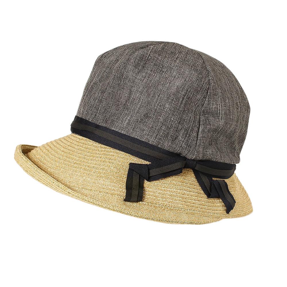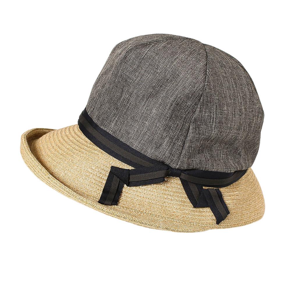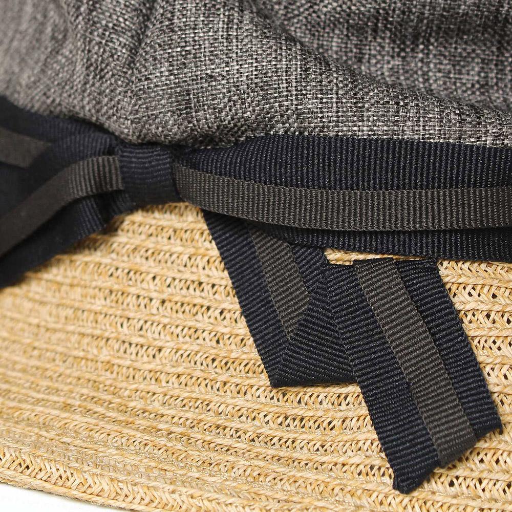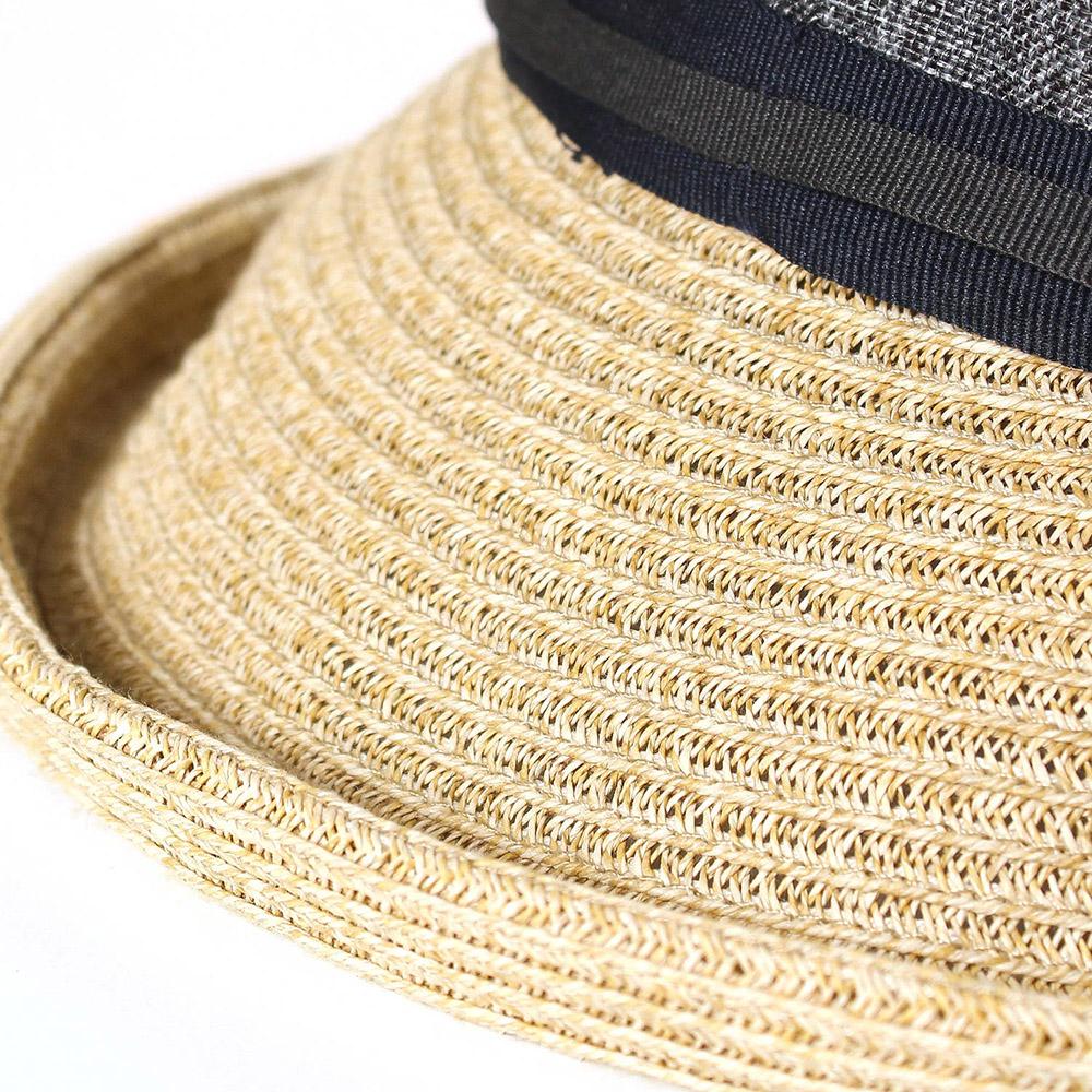 ブレード素材と布帛の切り替えデザインが夏らしいブルトンハットです。腰部分には2本のグログランリボンが巻かれていて上品な印象。内側にはサイズ調節用のテープ付きで、お好みのサイズ感で被っていただけます。