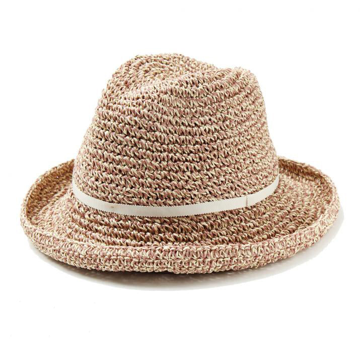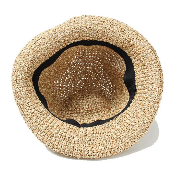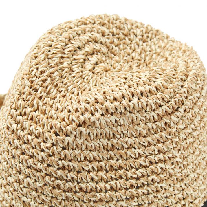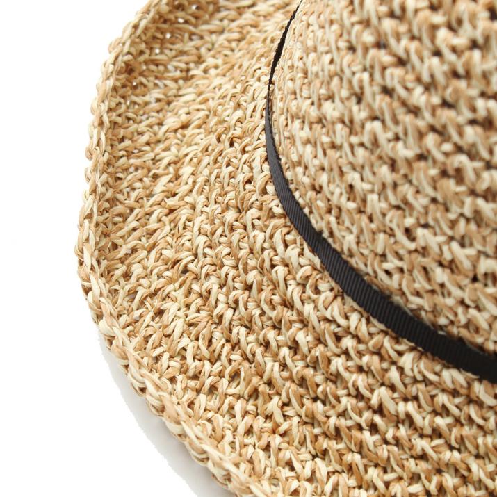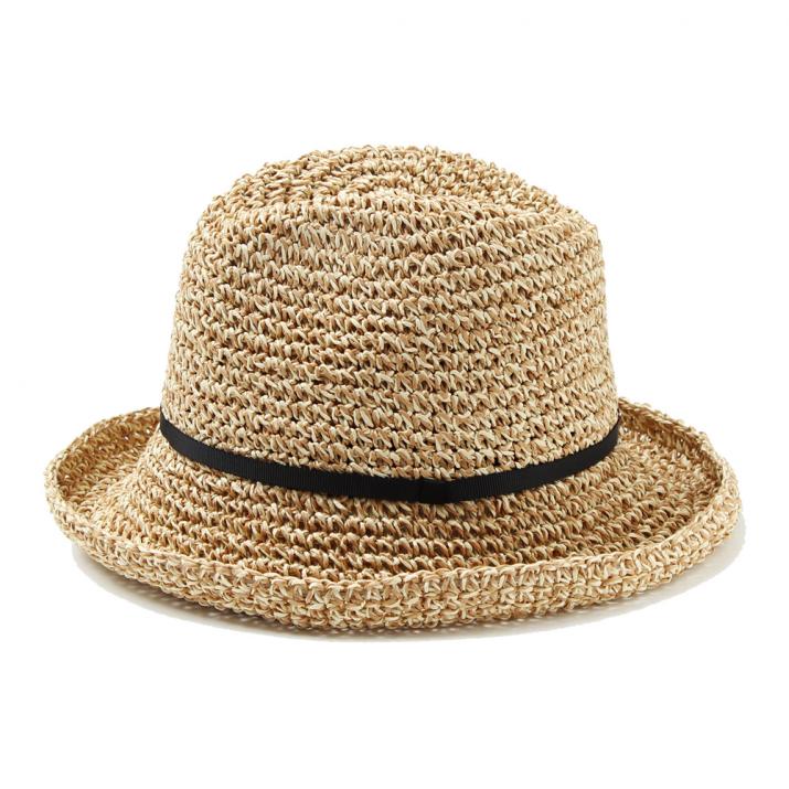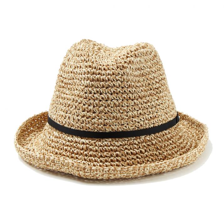 中折れタイプのつば広ハットです。つば広のデザインでUVケアもばっちり!ナチュラルな細編みは通気性にも優れ軽やかで爽やかな被り心地です。中折れタイプのシルエットは、エレガントになり過ぎない大人カジュアルにぴったりのデザインです。編み目の大きさ、つばの長さなどが商品によって異なります。手作りから生まれる自然な風合いをぜひお楽しみ下さい♪