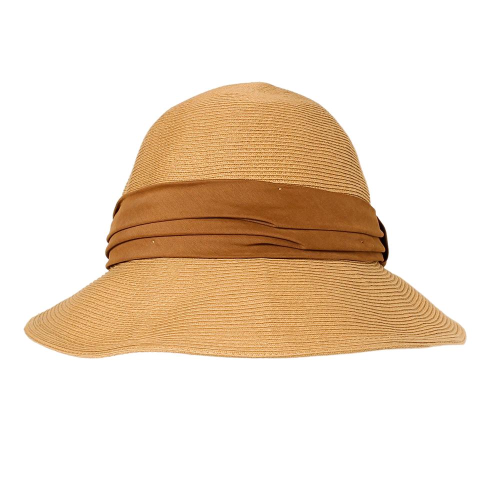 どんなお洋服にも合わせやすい、ナチュラル&シンプルなつば広ハットの麦わら帽子です。ドレープは綺麗なグログランリボンで女性らしさUP。柔らかく扱い易いので、夏のご旅行にもオススメ!