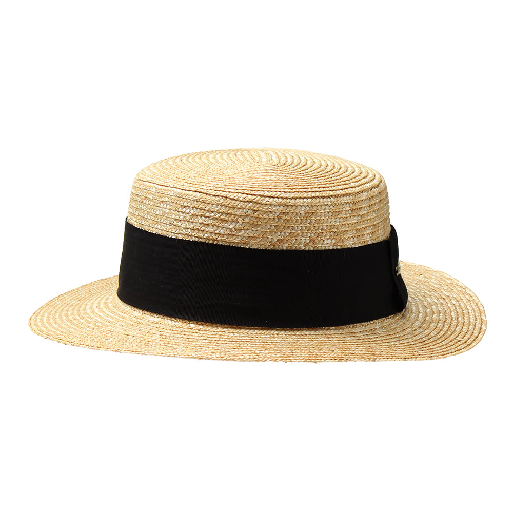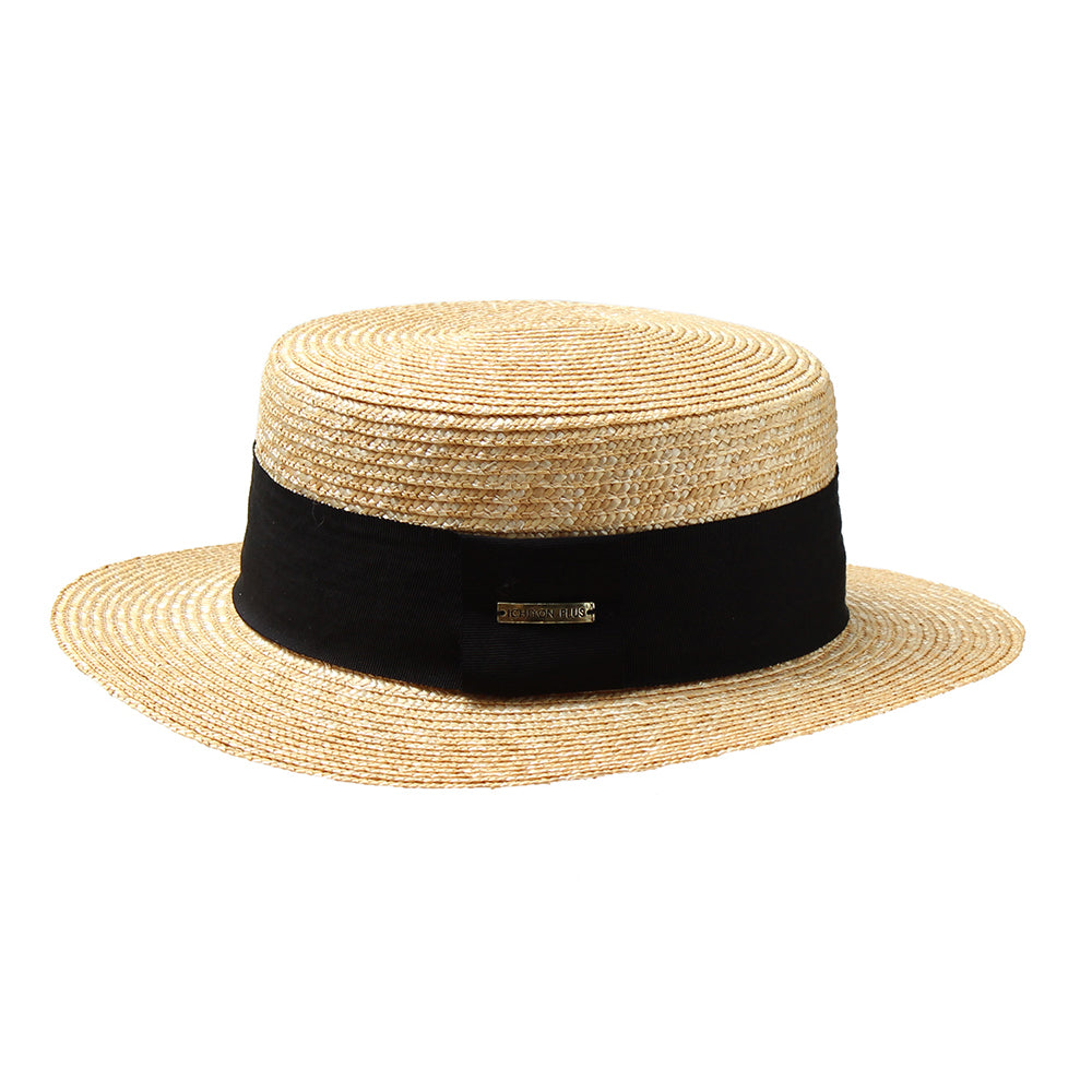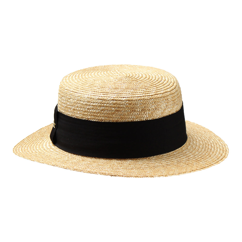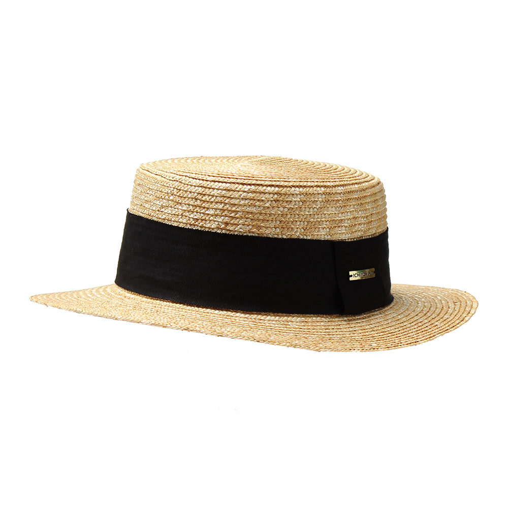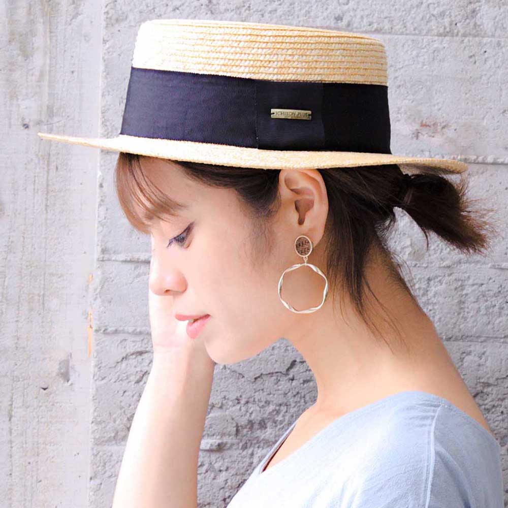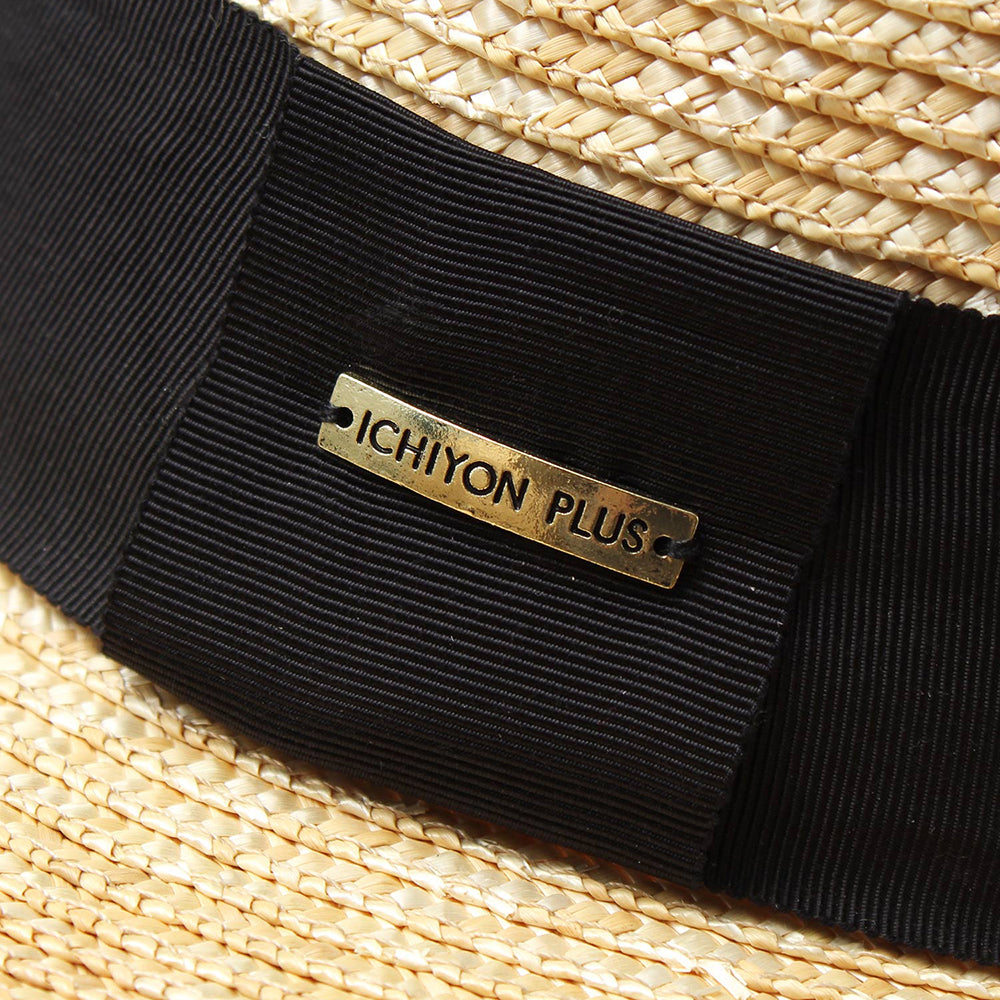 夏のクラシカル、カジュアルスタイルにおすすめのカンカン帽!太めのグログランリボンがコーデを引き締め、ICHIYONPLUSのゴールドタグがアンティークな雰囲気でとてもお洒落なデザインです。サイズ調節も可能なので、浮きやすいアイテムですがフィット感があります。親子アイテム:khat0142
