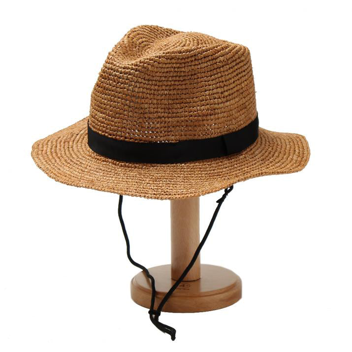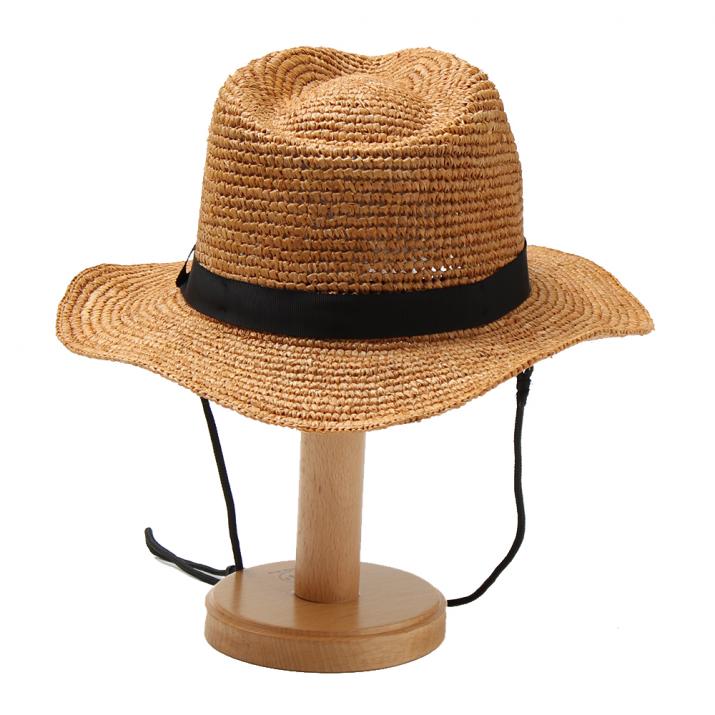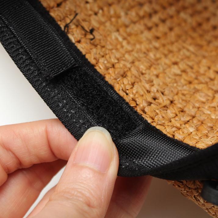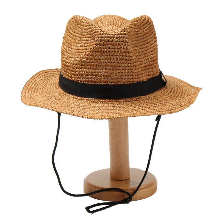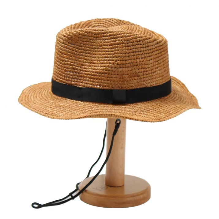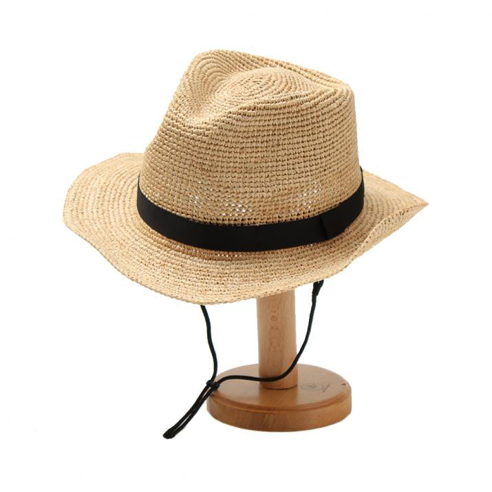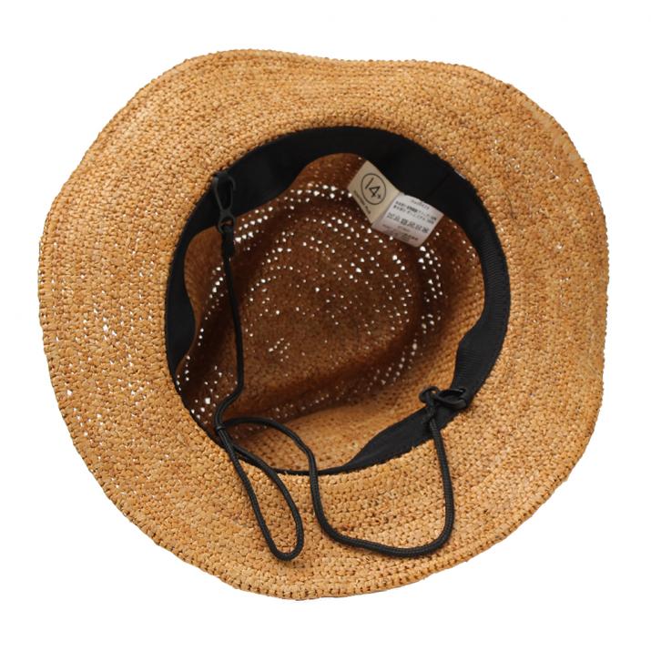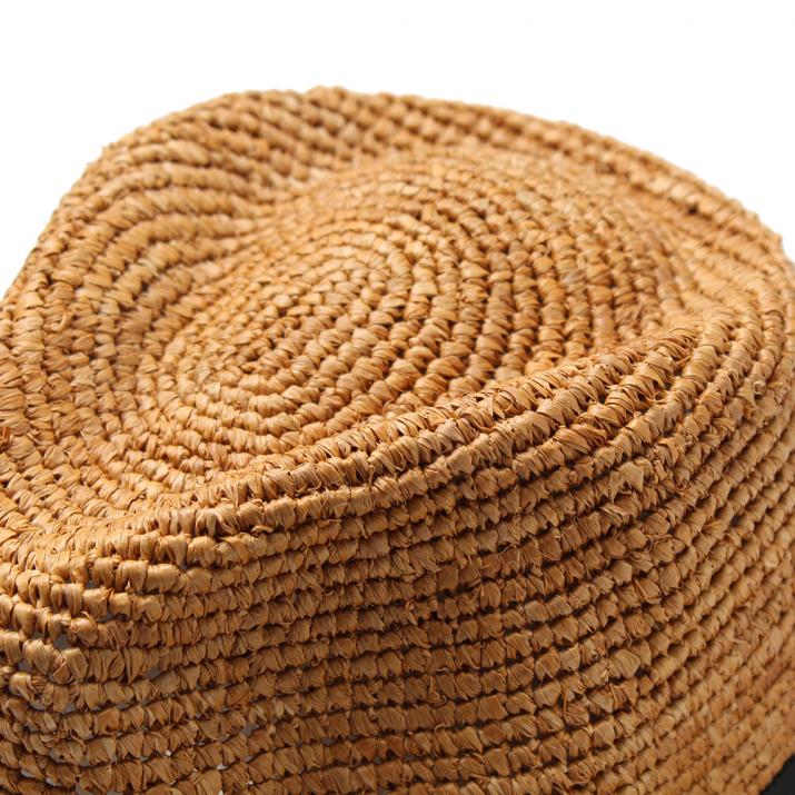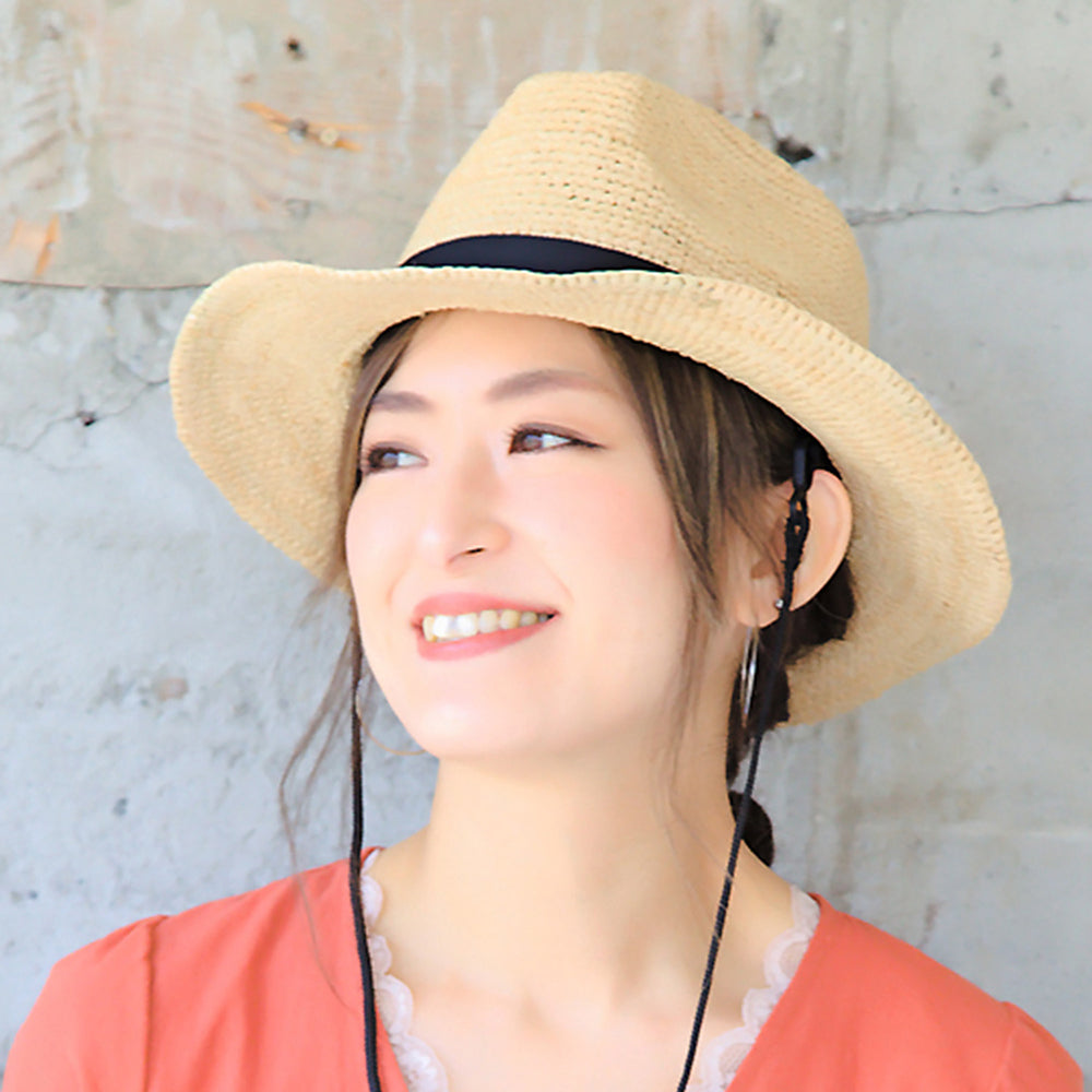細編みデザインの爽やかな中折れハットです。つば広デザインに取り外し可能なあご紐が付いて、屋外での作業やアウトドアなどにぴったりです。細編みのラフィア素材で被り心地もとても爽やか!しっかりとした中折れデザインでシルエットがキレイなので、あご紐を外してファッションハットとしても使えるヘビロテ間違いなしのアイテムです。