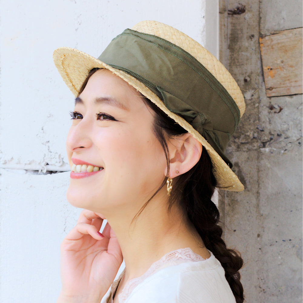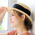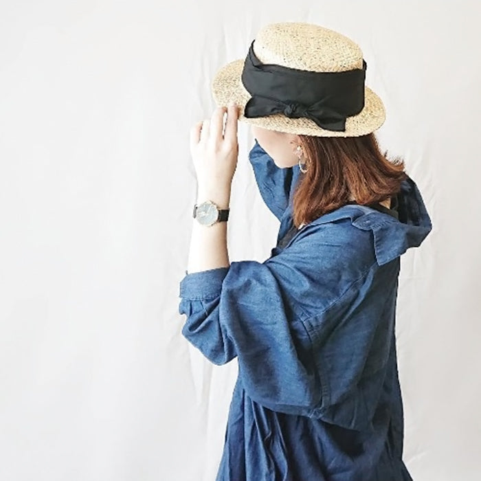 夏のクラシカル、カジュアルスタイルにおすすめのカンカン帽です。太めのシートリボンが印象的な大人可愛いデザイン!サイズ調節も可能なので、浮きやすいアイテムですがフィット感があります。