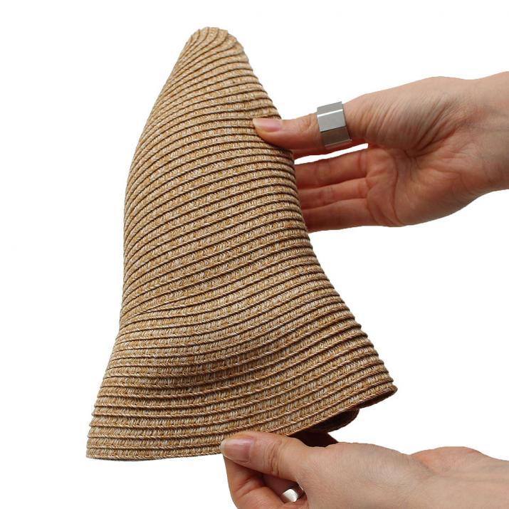 艶感のあるポリエステル素材で、ジュートのような手触りのUVハット。紫外線遮断率99%、折りたたみOK、丸洗いOKの機能性に優れた嬉しいハットです。小ぶりなデザインはコーディネートの上品なアクセントになります。