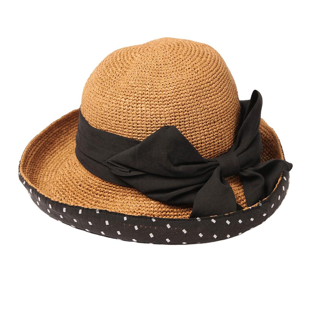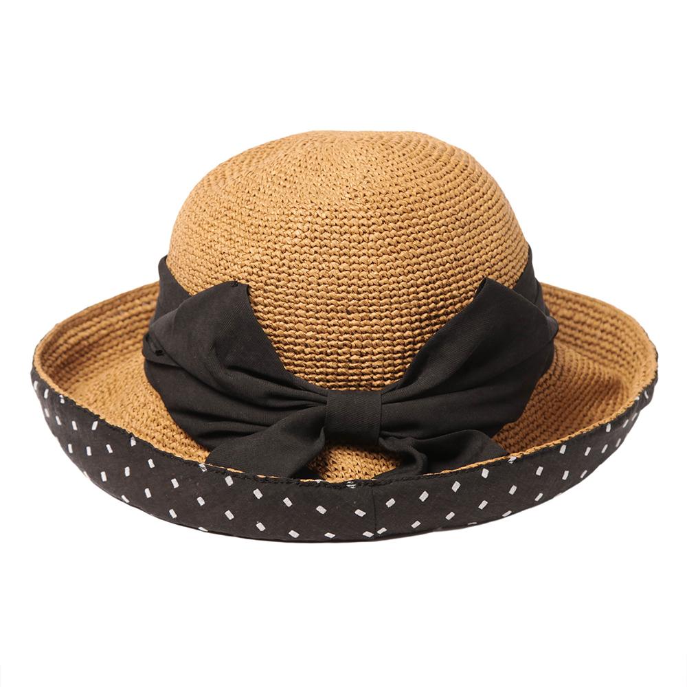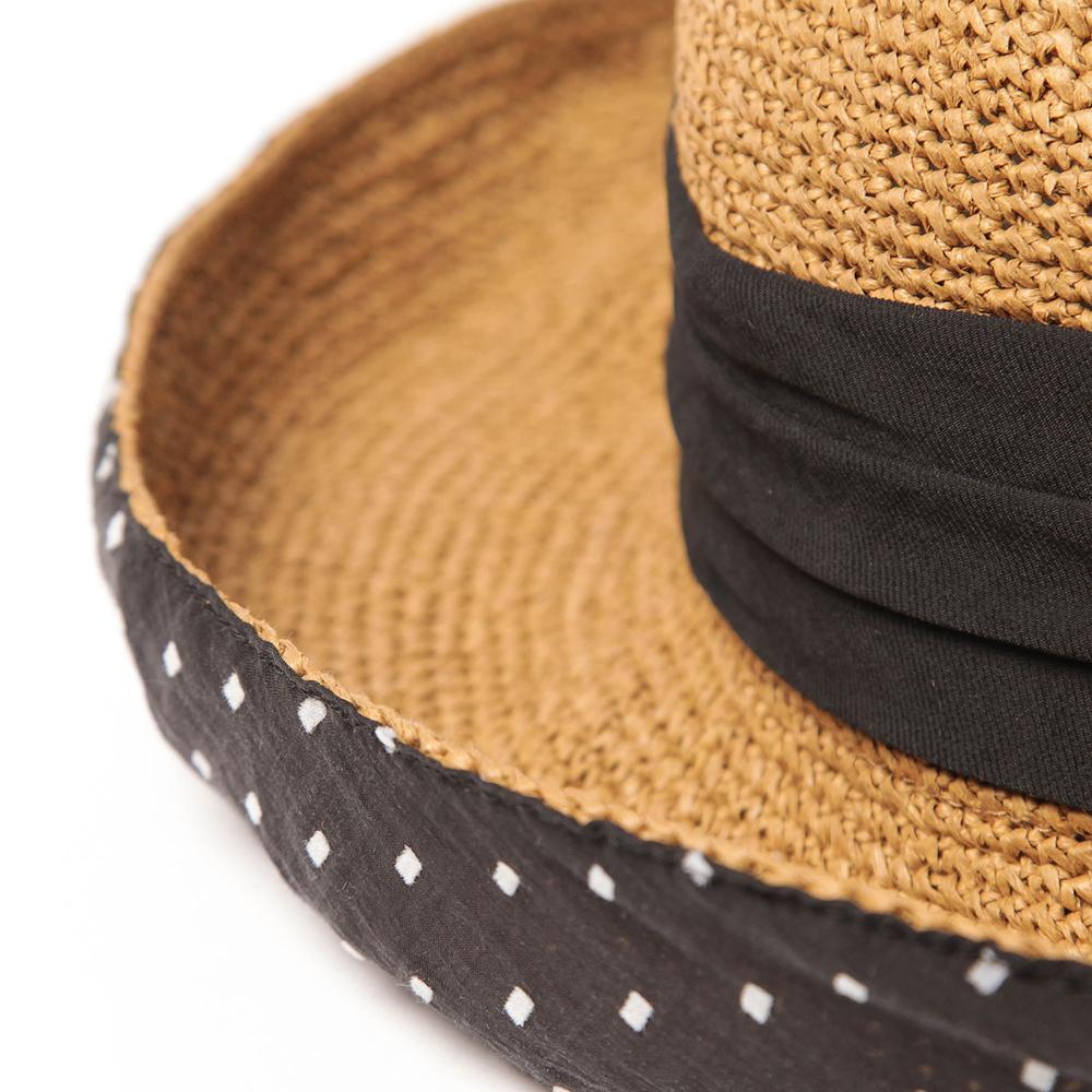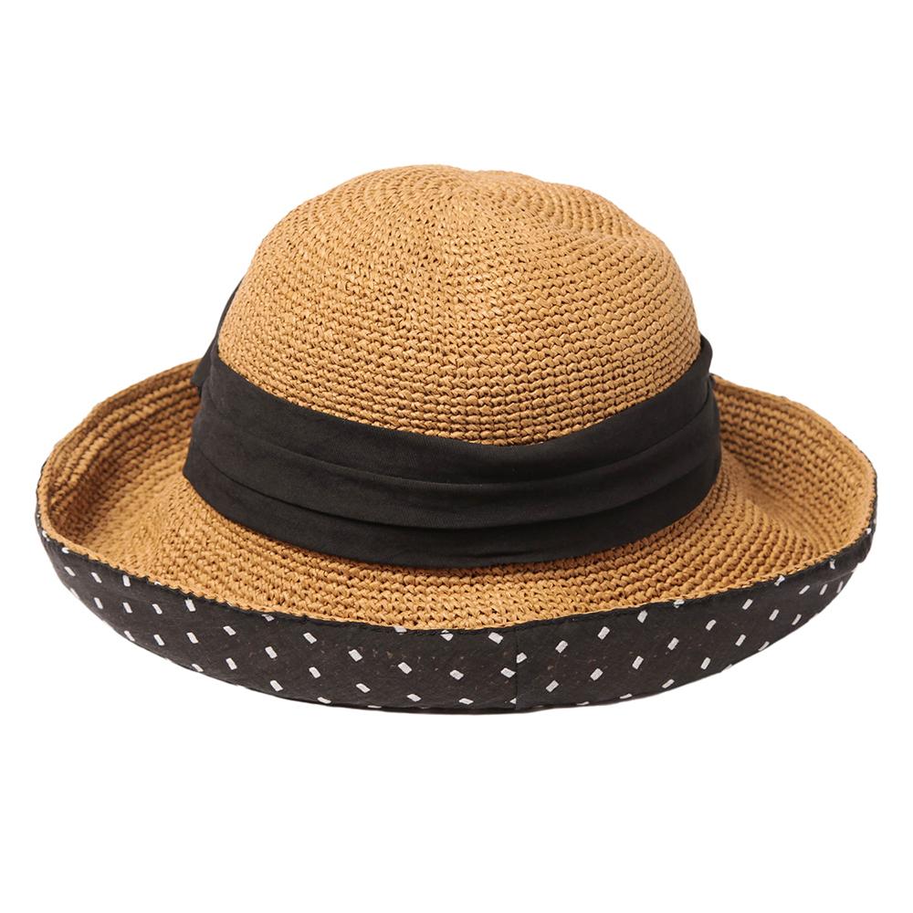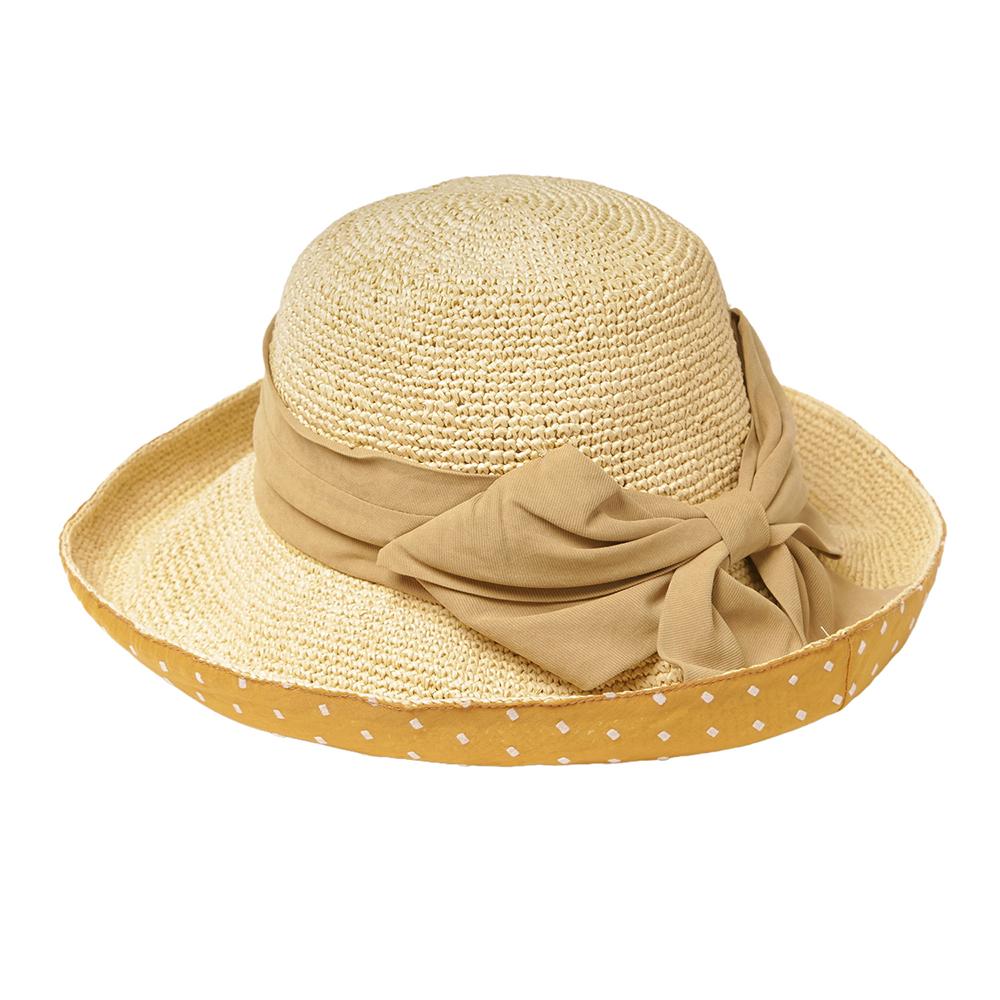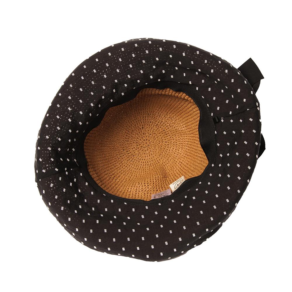 上品な印象のセーラーハットにドットの裏地でかわいさをプラス。かっちりしすぎない柔らかな細編みのペーパー素材は、軽やかで楽な被り心地です。ツバ裏に施されたほんのり透け感のあるドット生地が涼しげで夏らしく、コーデにアクセントをプラスしてくれます。内側にはサイズ調節用のテープと、あご紐を取り付けるためのループが施されています。