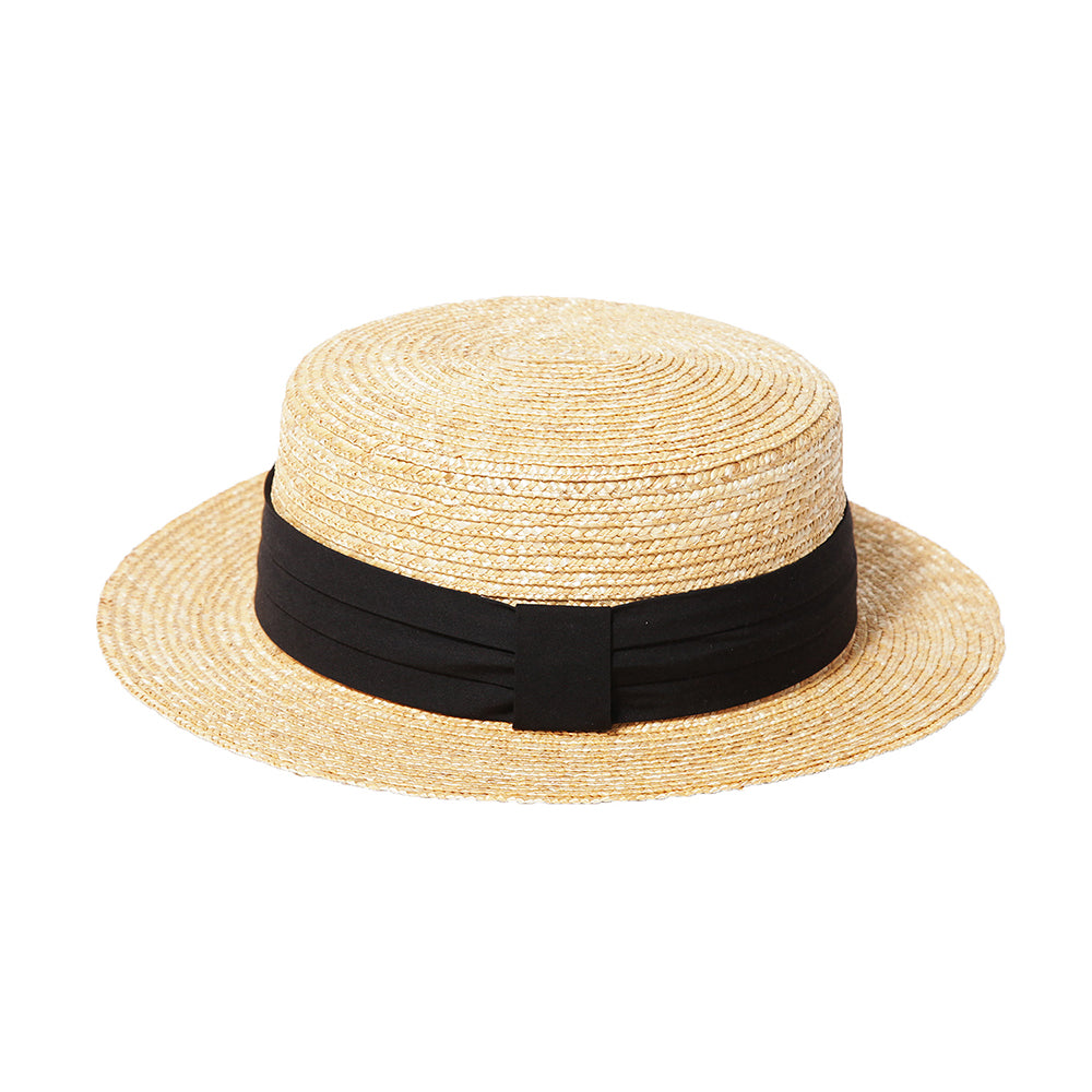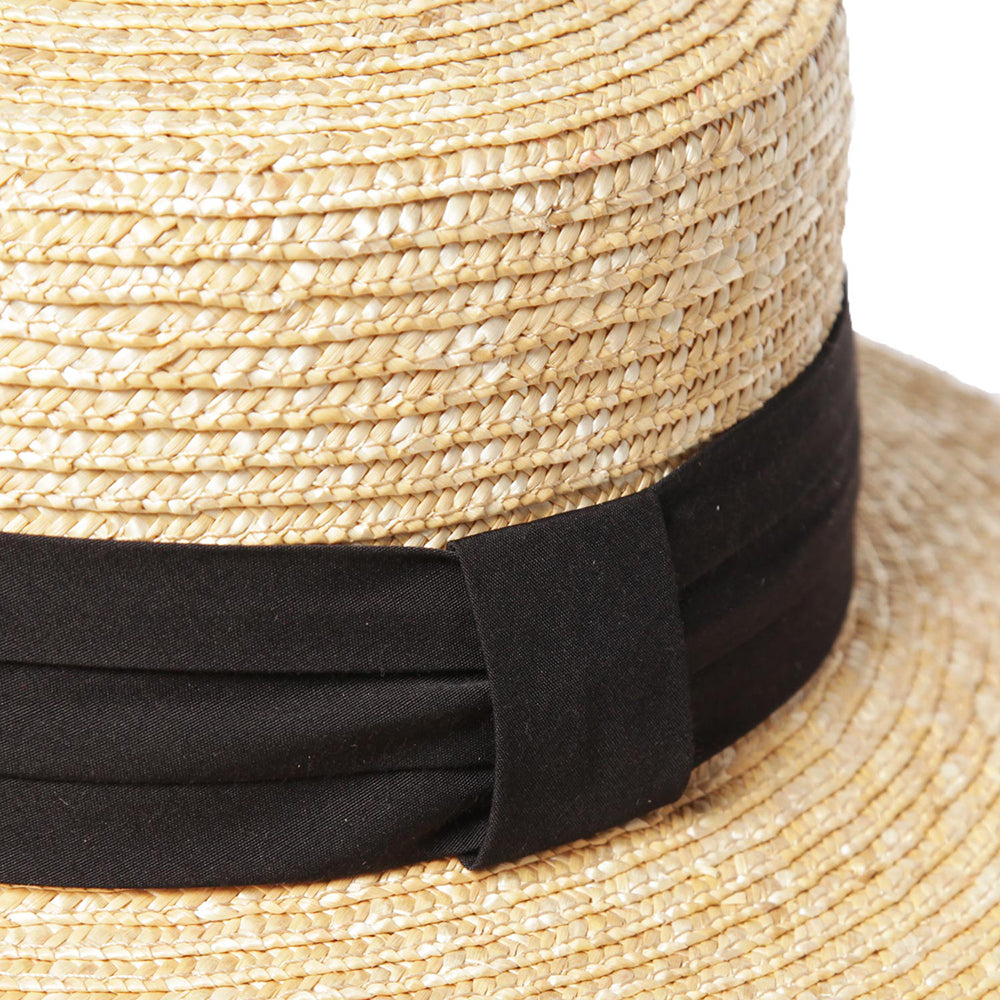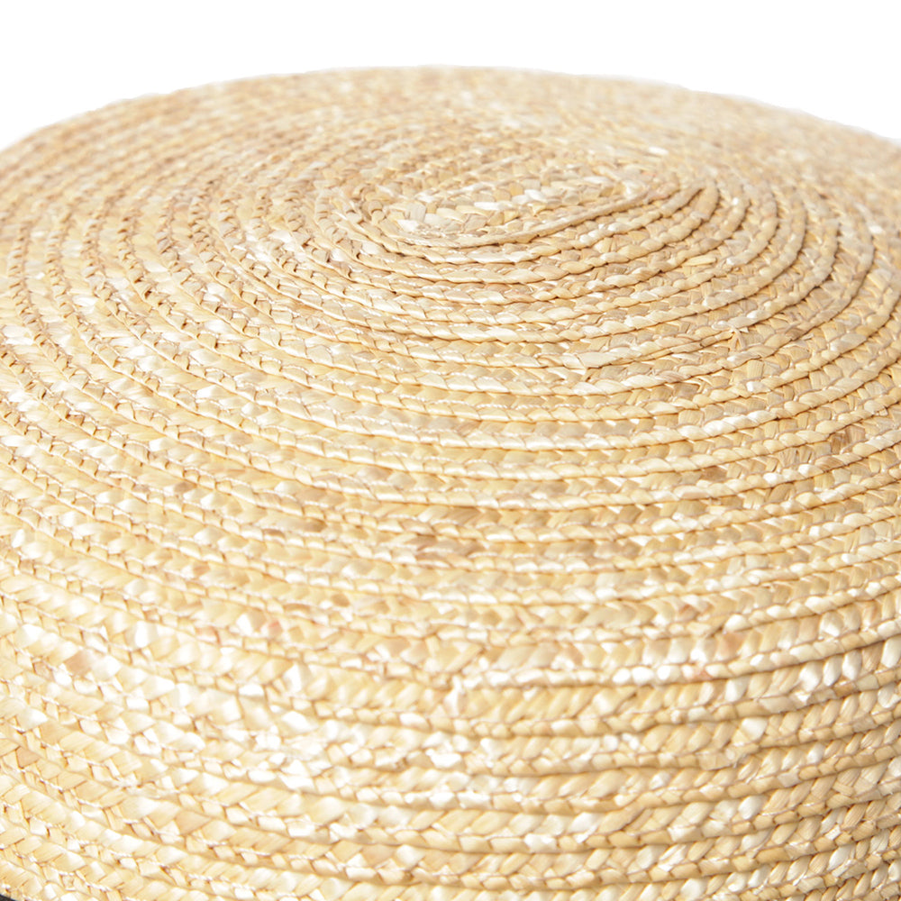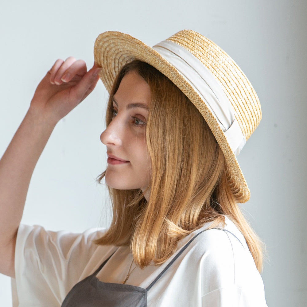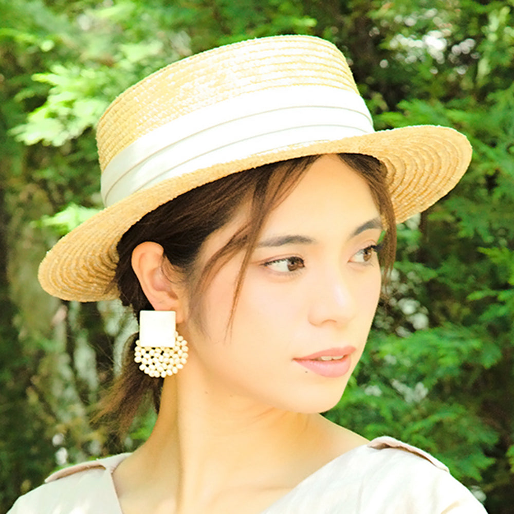 爽やかな麦素材のブレード編みとコットン混のタックリボンが大人可愛いデザイン。