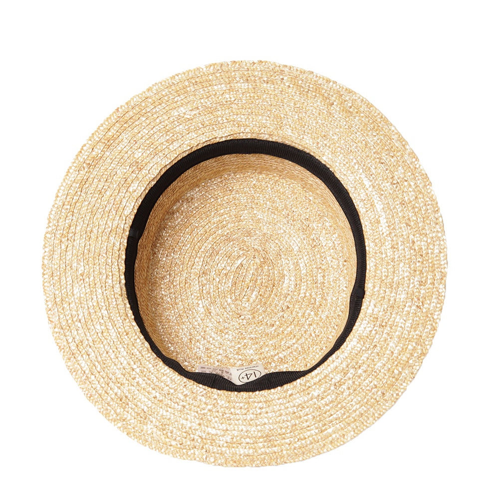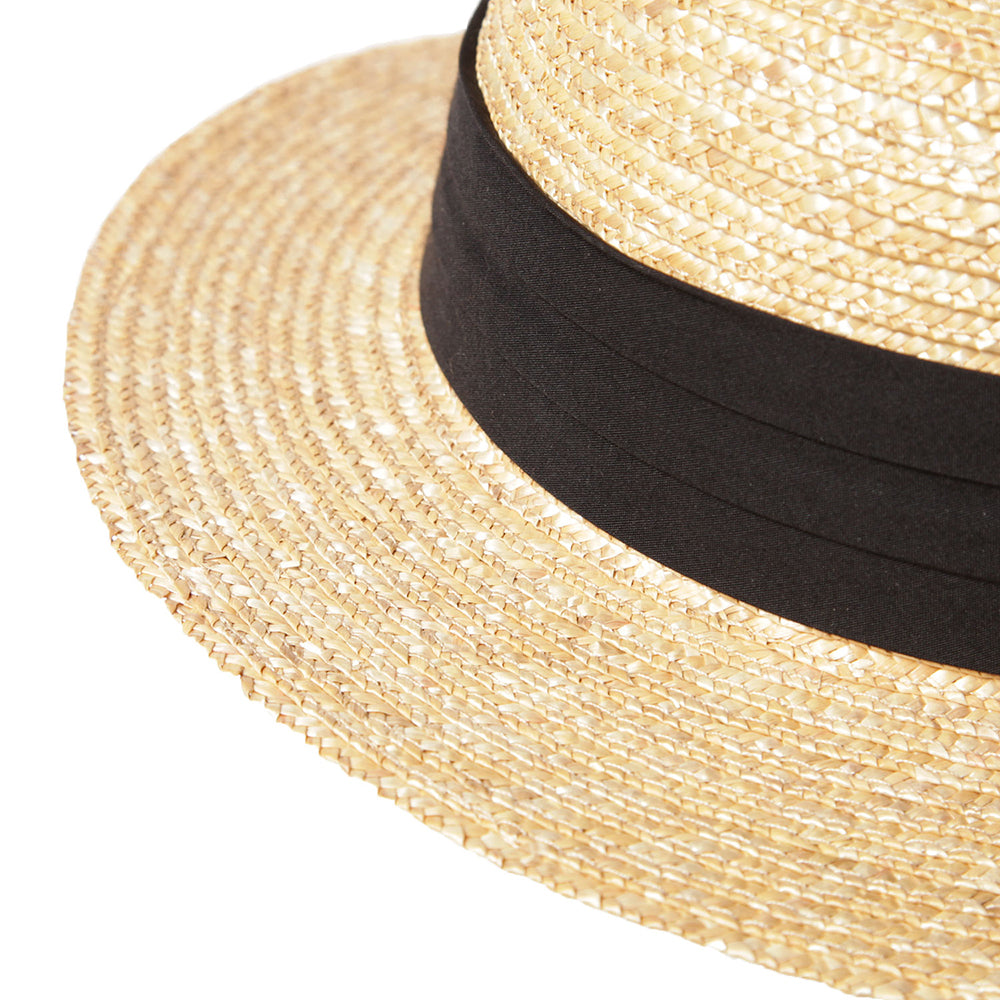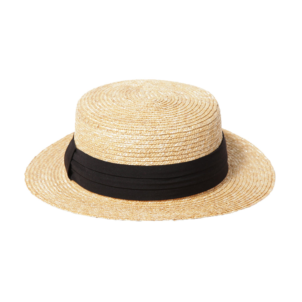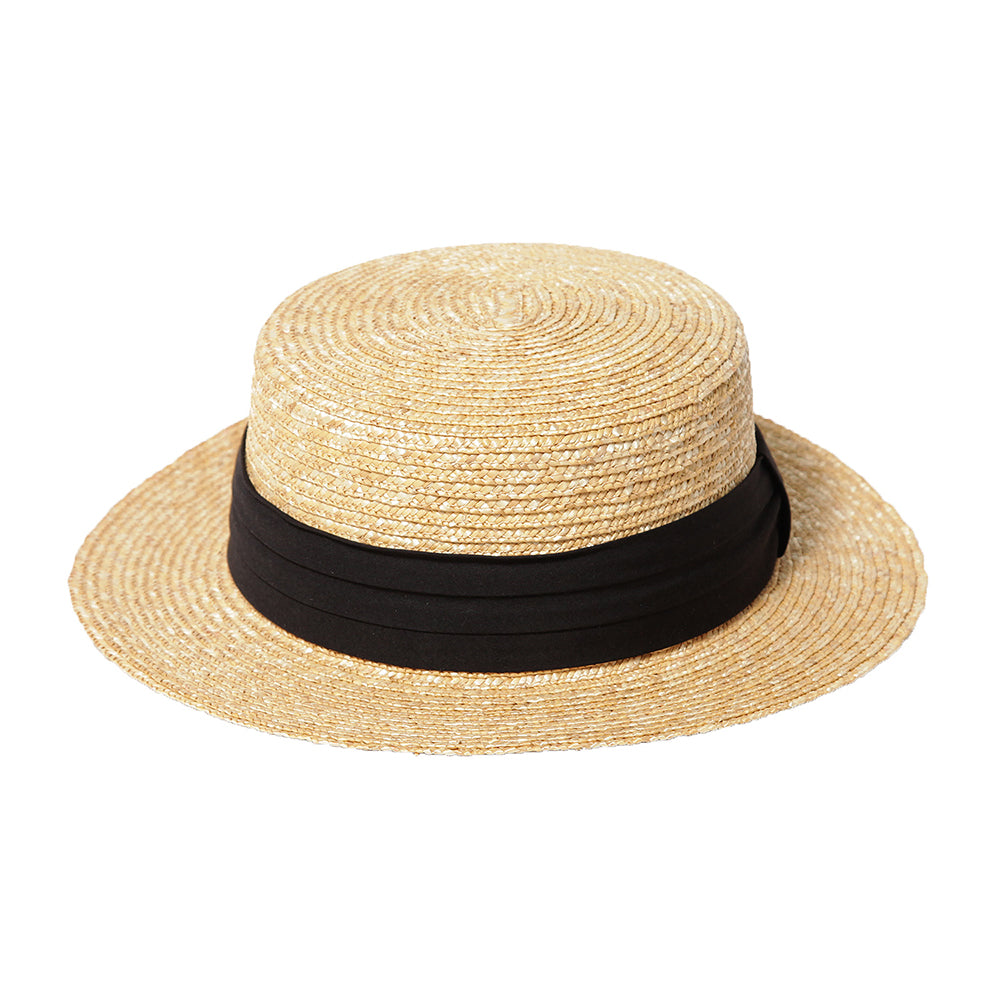 爽やかな麦素材のブレード編みとコットン混のタックリボンが大人可愛いデザイン。