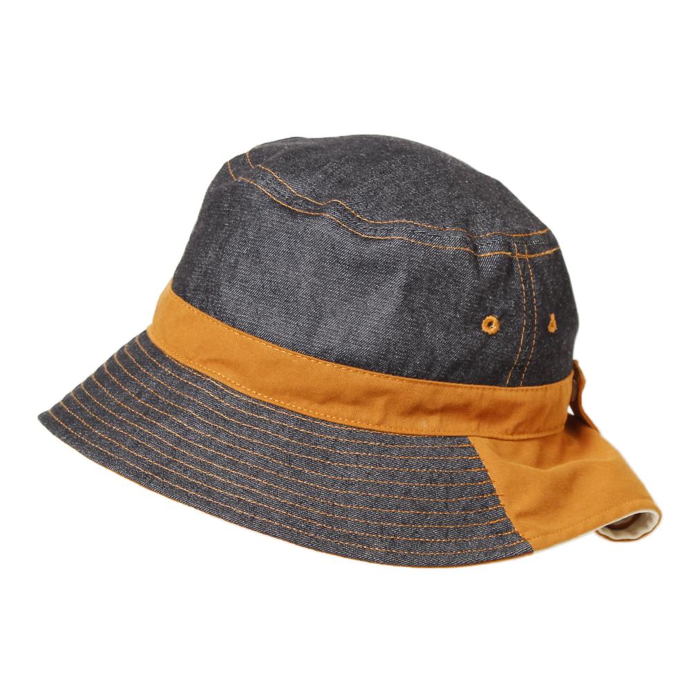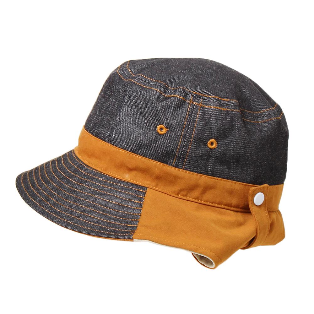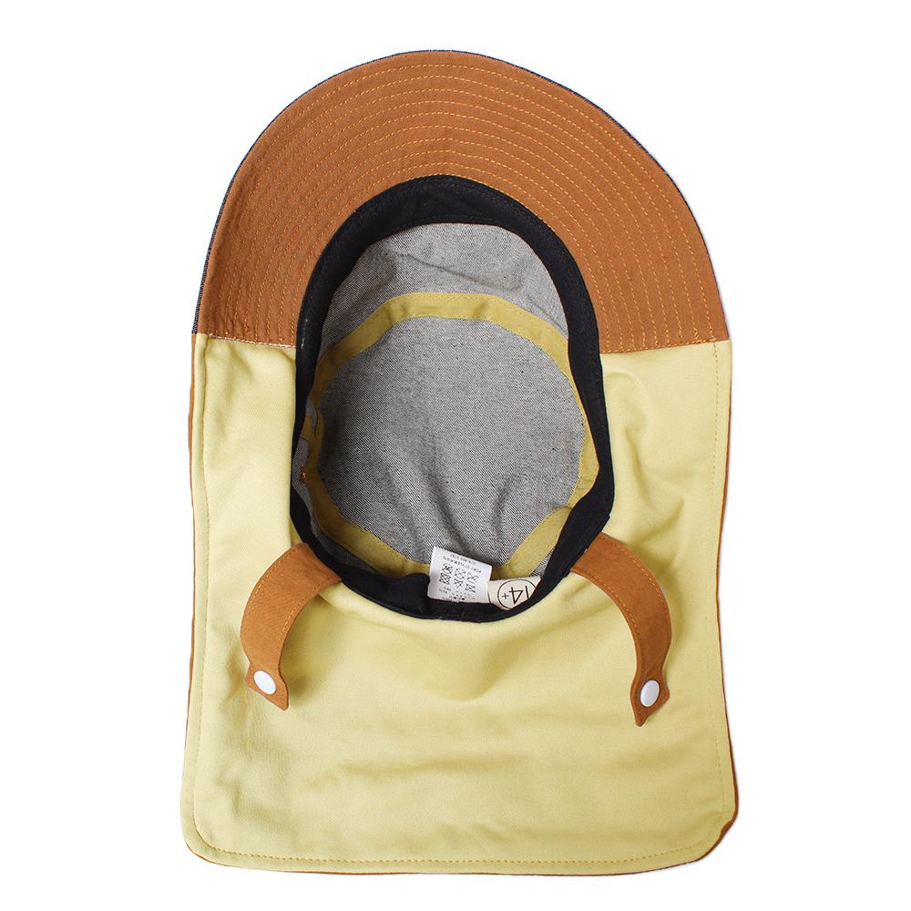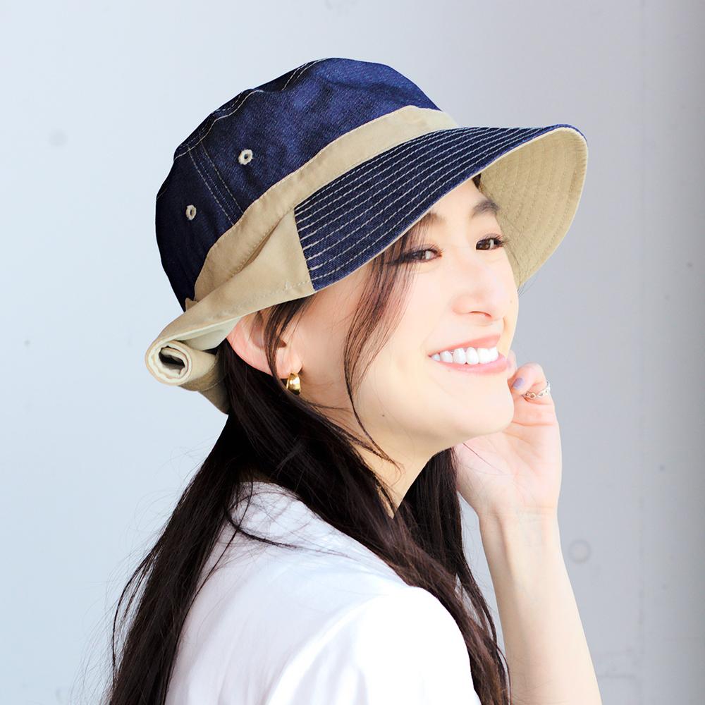 デニムとコットンのバイカラーがアクセントのカジュアルなクロッシェハットです。収納式の垂れ付きなので、アウトドアなどでの日差し除けや熱中症対策にも便利です。サイズ調節も可能なので、ご自身に合ったサイズ感で被って頂けます。