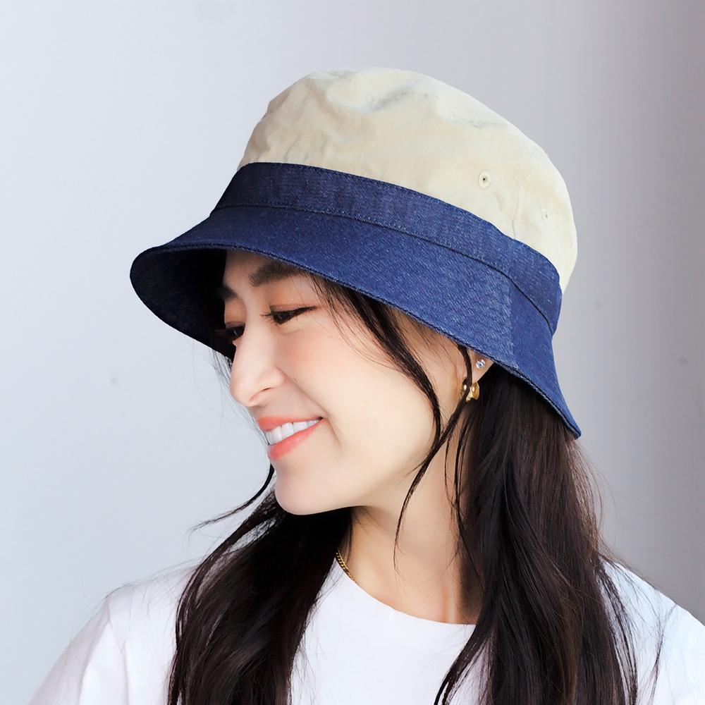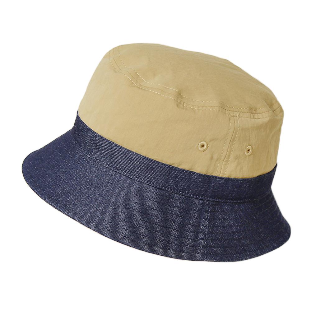 デニムとコットンのバイカラーがオシャレなバケットハットです。パリッとした素材感がカジュアルスタイルにピッタリ!サイズ調整も可能なので、ご自身に合ったサイズ感で被って頂けます。
