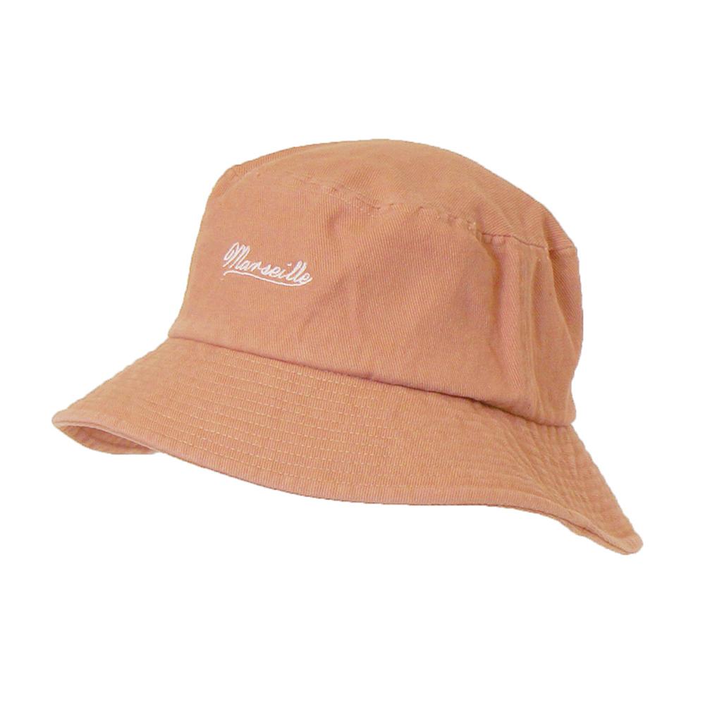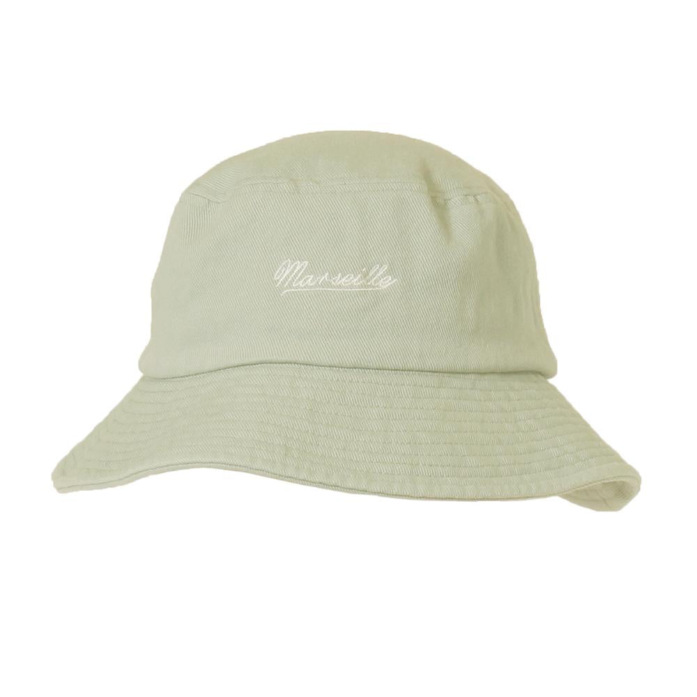 「Marseille」のロゴ刺繍がおしゃれなコットン素材のバケットハットです。ワンカラーのシンプルなデザインに、フロントに入ったロゴがさりげないポイント。カラーは、定番のブラックのに加えてトレンドのくすみ系パステルカラーをそろえました。普段使いやお出かけはもちろん、アウトドアにもおすすめです。