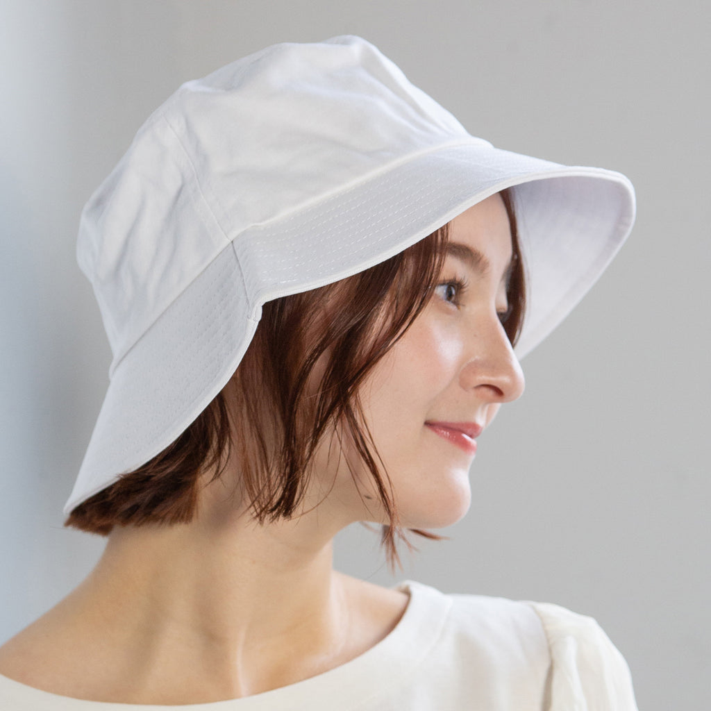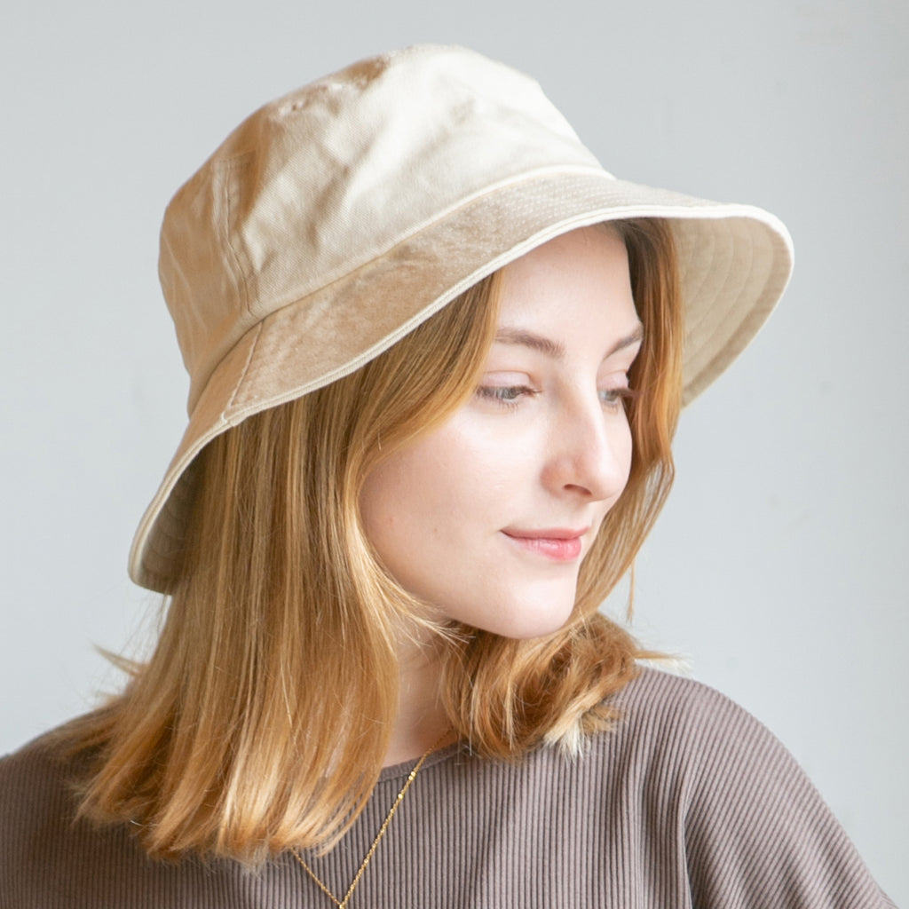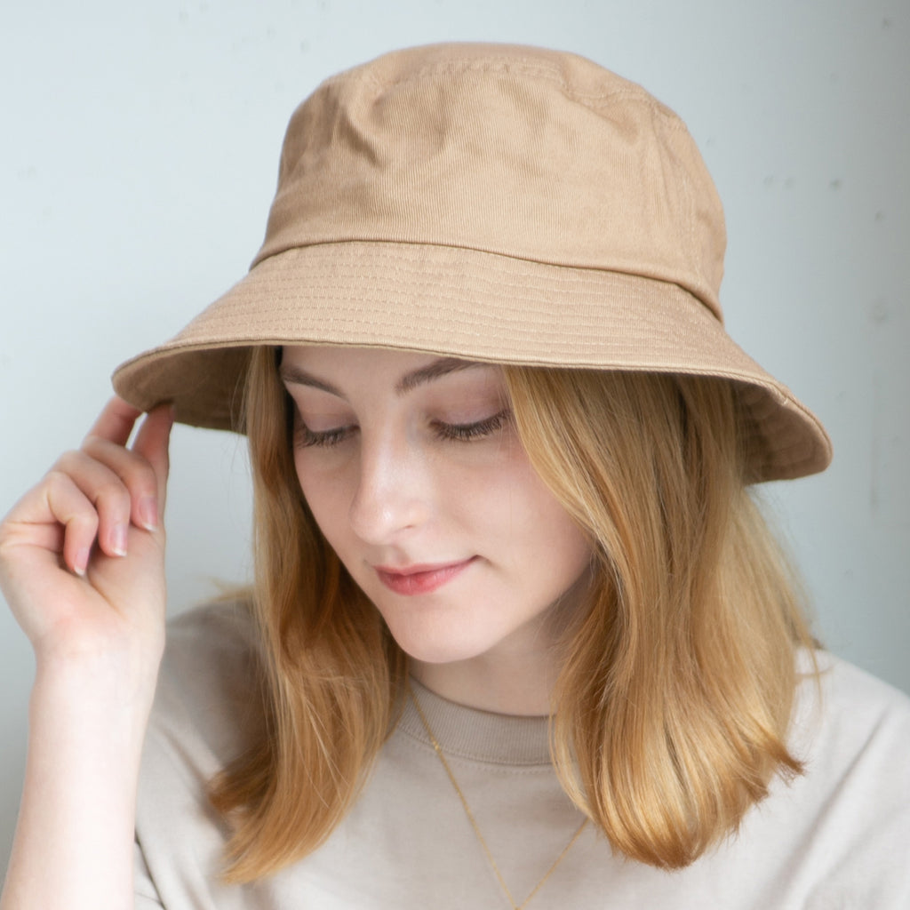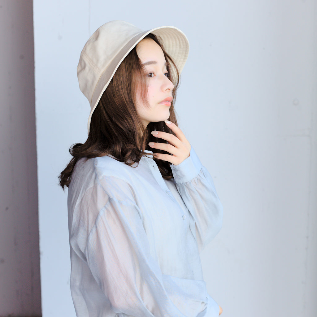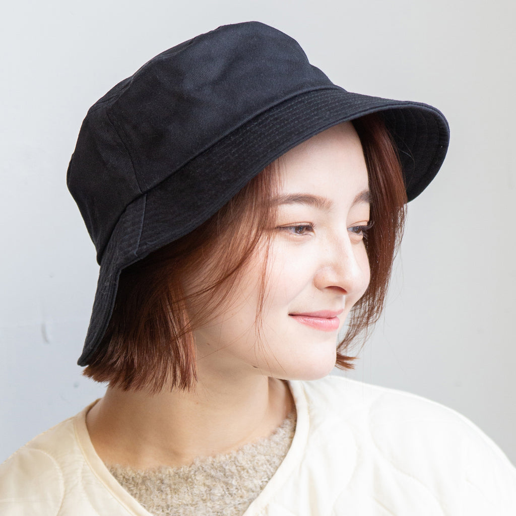 シンプルデザインのバケットハット。折りたたんでの持ち運びにも便利!つばは通常のデザインより少し長めに設定していますので、日除け効果、小顔効果にも期待出来ます!またカジュアル過ぎないデザインなので、幅広いコーデに合わせて頂けます。※帽子の深さは着用時の深さ(帽子天面からつば根元まで)を計測しておりますので、デザインにより被り心地、印象が異なります。