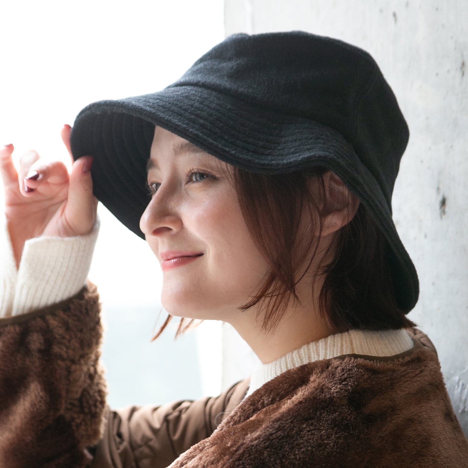 オールシーズン使えるコットン素材と、秋冬に嬉しいメルトン素材の2種類から選べるシンプルバケットハットです。