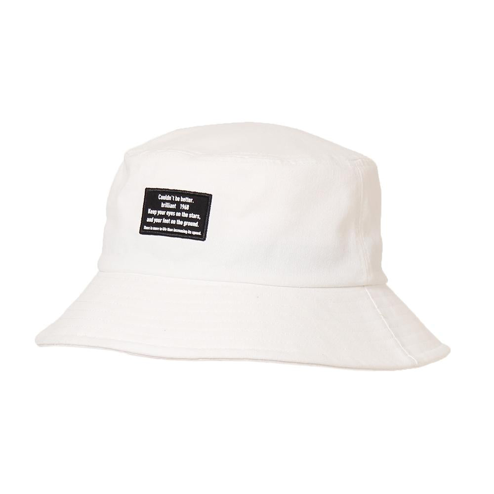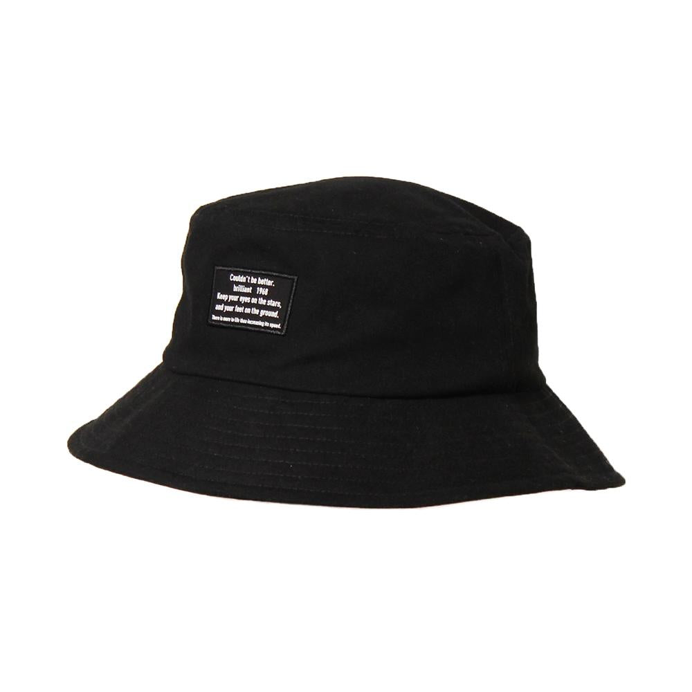 フロント部分のタグがカジュアルコーデのアクセントに!シンプルで合わせやすい、折りたたんでの持ち運びにも便利なバケットハットです。つばは少し長めの設定で日除け、小顔効果も期待でき、フェスなどのイベントやアウトドアにもピッタリのアイテムです。