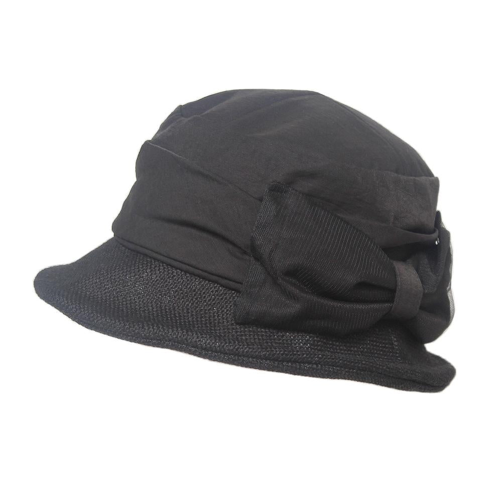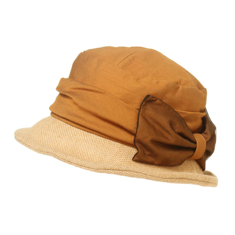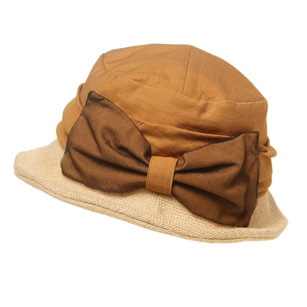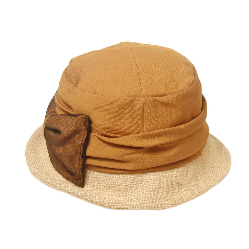 異素材を掛け合わせたオシャレなリボンハットです。つば部分にはジュート素材を使用し、夏らしい爽やかなデザインに。サイドには大きめのチュールリボンをあしらい、女性らしい可愛いポイントになっています。