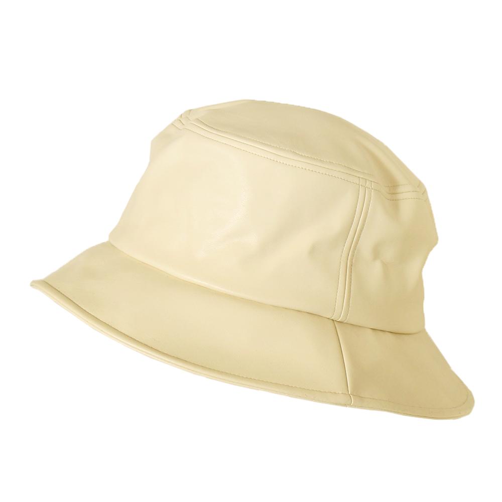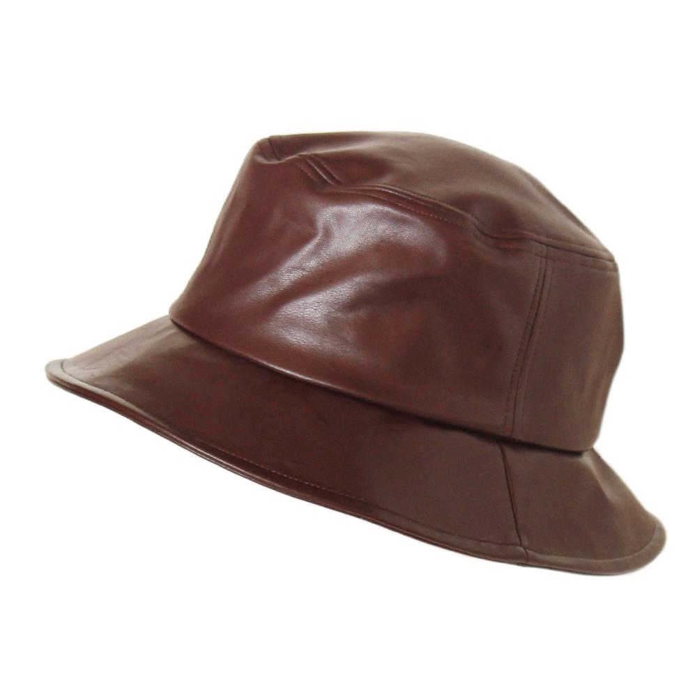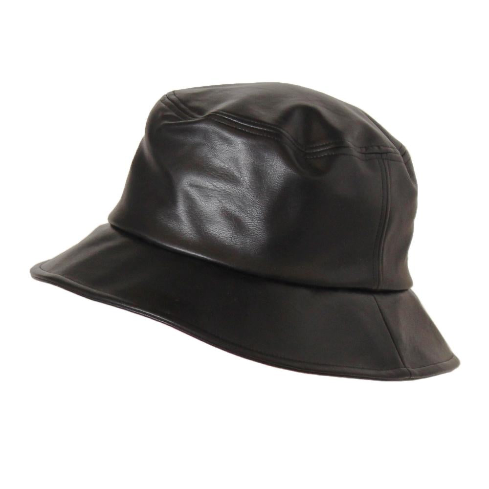 ソフトなエコレザーを使ったスタンダードなバケットハットです。ベーシックなフォルムに加え、飽きのこないシンプルなデザインなので合わせやすくコーデのアクセントにもピッタリなアイテムです。内側にあるすべりの裏側には、サイズを調節して頂けるテープが付いていますのでご自分のサイズ感で被って頂けます。