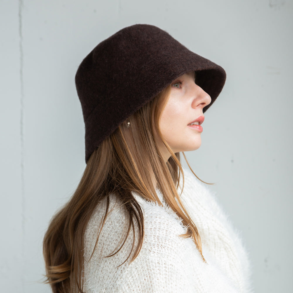 見た目にも暖かいバスク素材を使用したバケットハットです。つばの角度やシルエットにこだわったシンプルなデザインは、どんなスタイルにも合わせやすく上質な雰囲気を醸し出します。