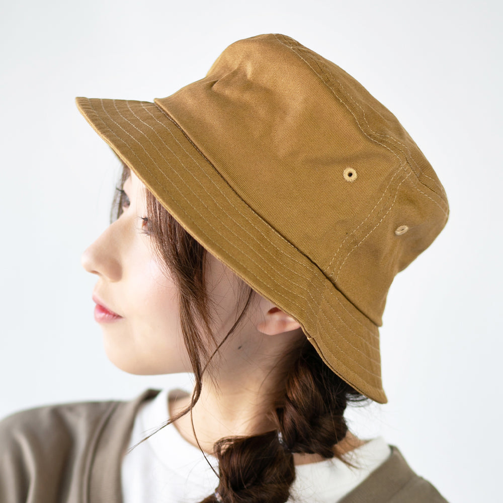 シンプルデザインのバケットハット。折りたたんでの持ち運びにも便利!シンプルでスタンダードなデザインなので、被りやすくヘビロテ間違いなしのアイテムです。手洗いも可能なので、いつでも清潔に保っていただけます。内側にあるすべりの裏側には、サイズを調節して頂けるテープが付いていますのでご自分のサイズ感で被って頂けます。