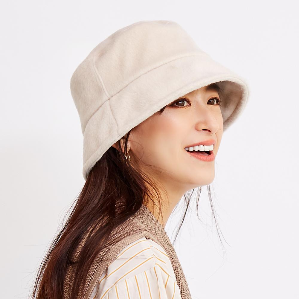 短毛ファーを使用した見た目にも温かいバケットハット。毛足が短めの素材を使用していますので、ボリュームが出過ぎることもなく比較的スッキリと被っていただけます。とても柔らかい素材感なので、折り畳んでの持ち運びにも便利です。内側にあるすべりの裏側には、サイズを調節して頂けるテープが付いていますのでご自分のサイズ感で被って頂けます。