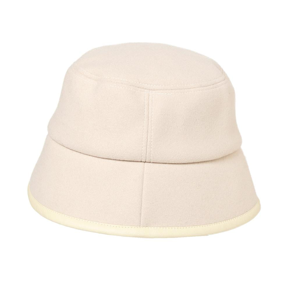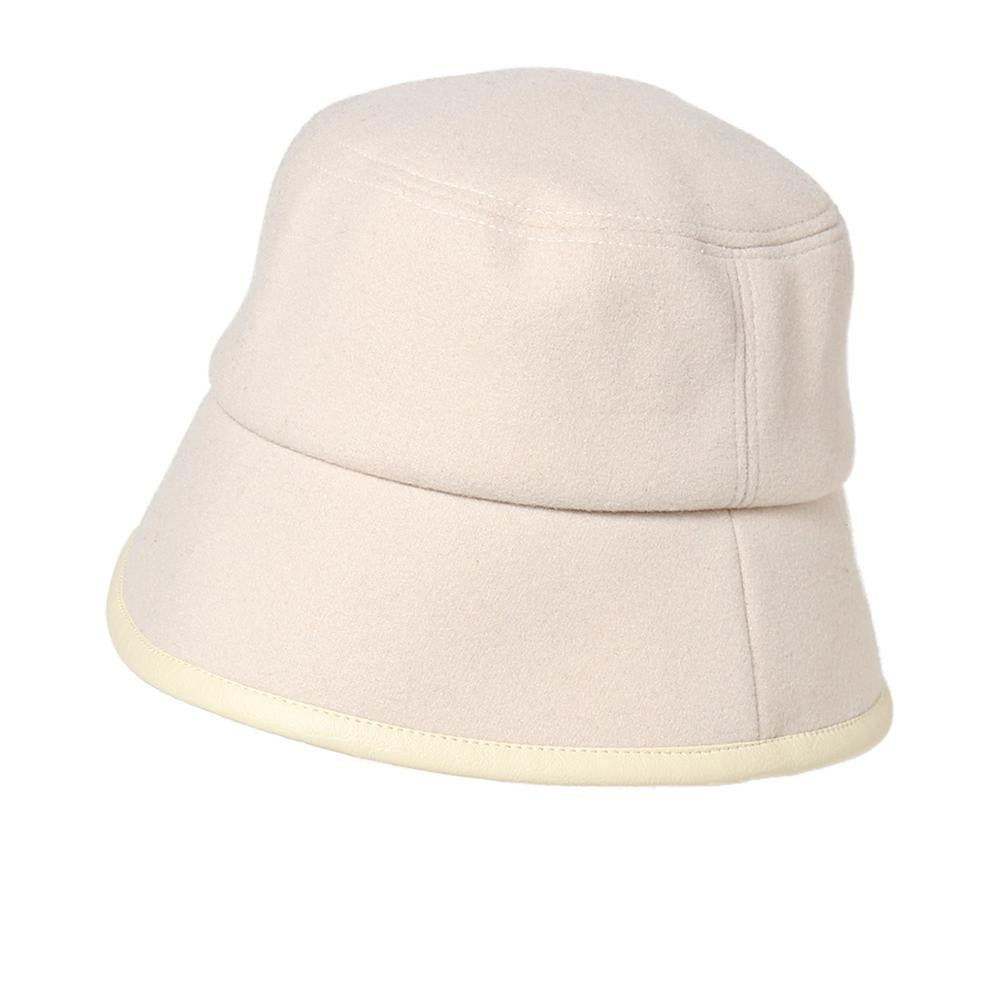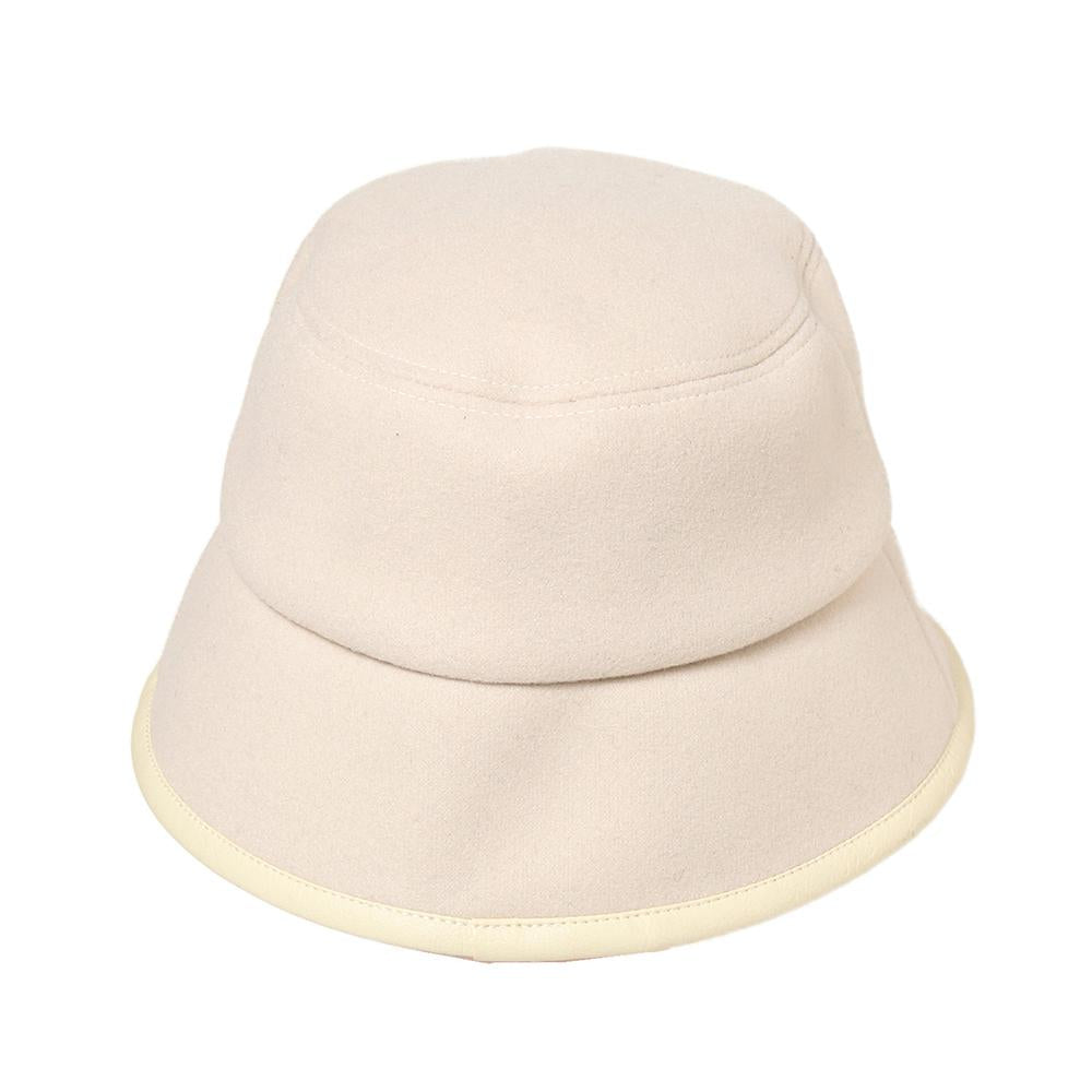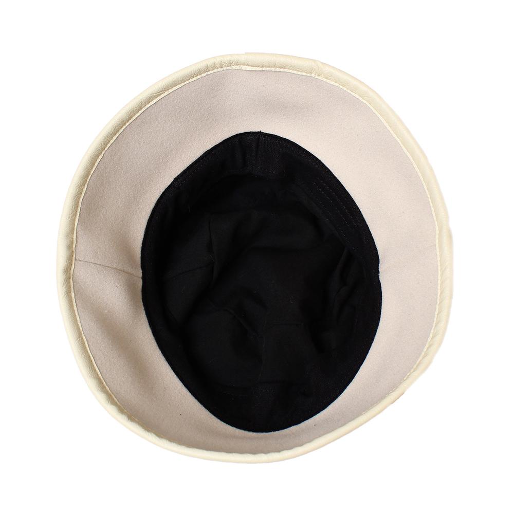 前下がりなツバの形で、カジュアルはもちろん上品な大人コーデにも合わせていただけます。つば先には馴染みの良い同系色のフェイクレザーのパイピングを施し、主張し過ぎない程よいアクセントになっています。内側にあるすべりの裏側には、サイズを調節して頂けるテープが付いていますのでご自分のサイズ感で被って頂けます。
