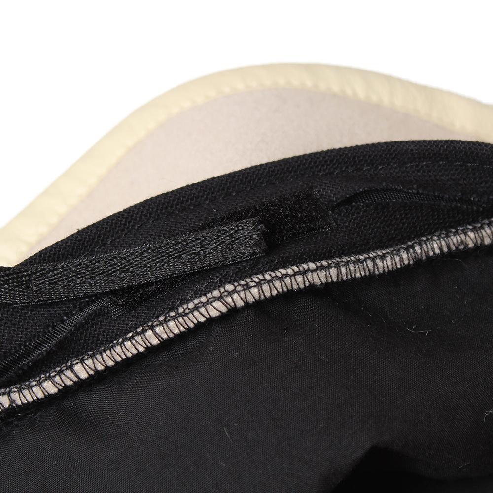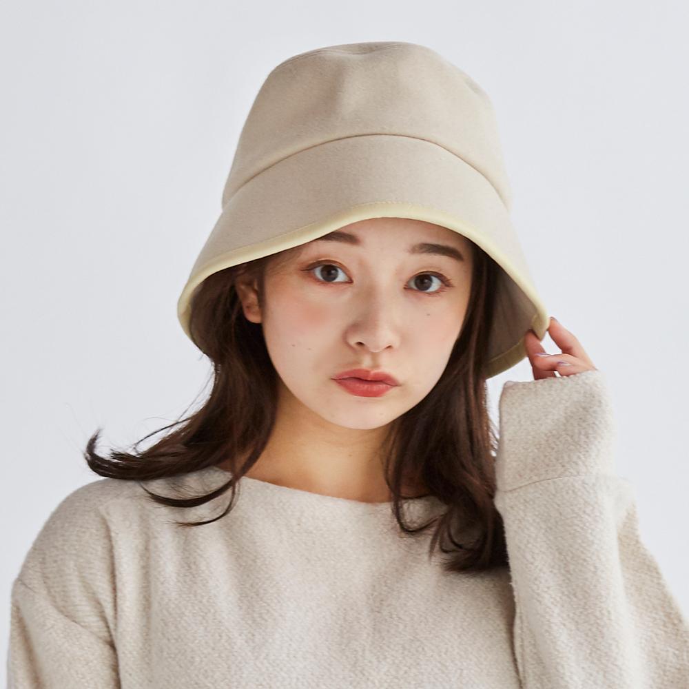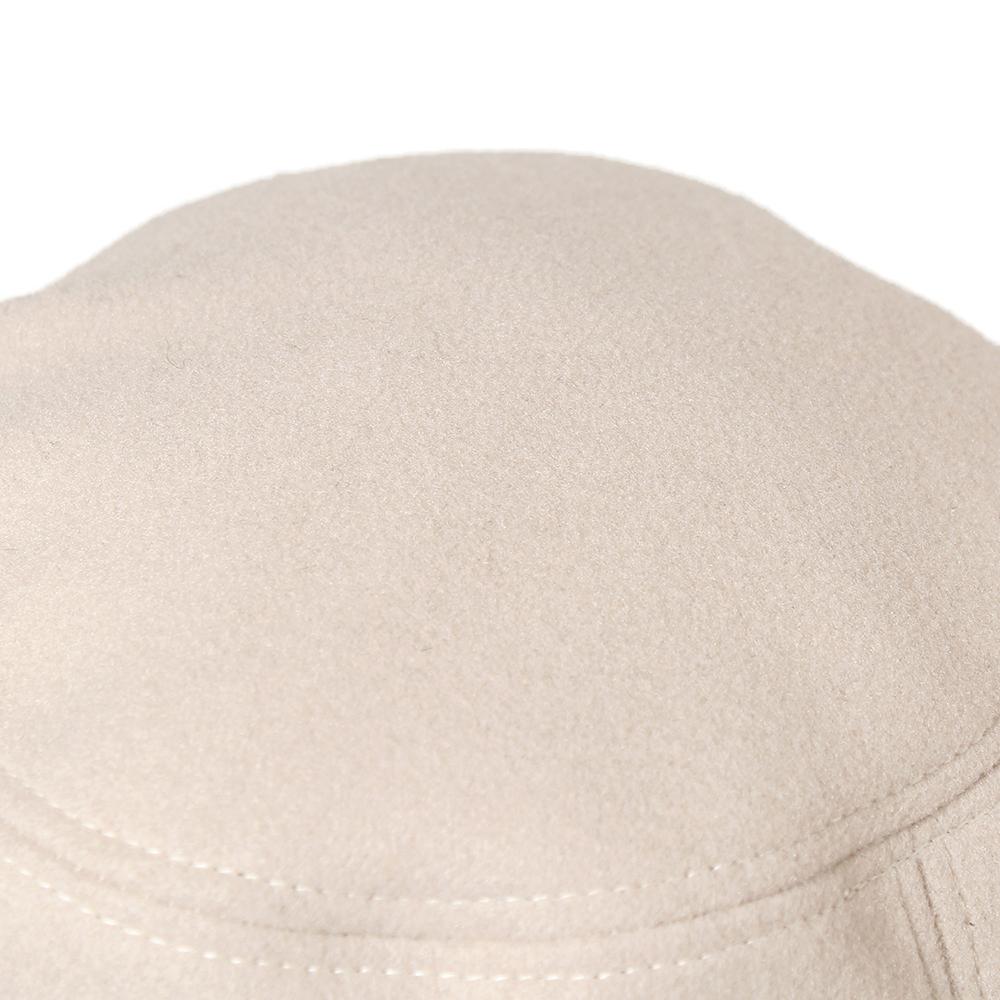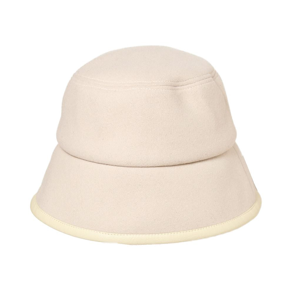 前下がりなツバの形で、カジュアルはもちろん上品な大人コーデにも合わせていただけます。つば先には馴染みの良い同系色のフェイクレザーのパイピングを施し、主張し過ぎない程よいアクセントになっています。内側にあるすべりの裏側には、サイズを調節して頂けるテープが付いていますのでご自分のサイズ感で被って頂けます。