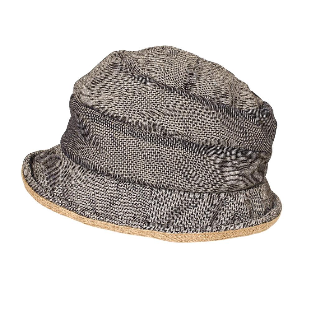ツバ先にブレード素材のラインが施された春夏にぴったりなデザインです。軽く柔らかい帽子で、折りたたんでの持ち運びもOK。