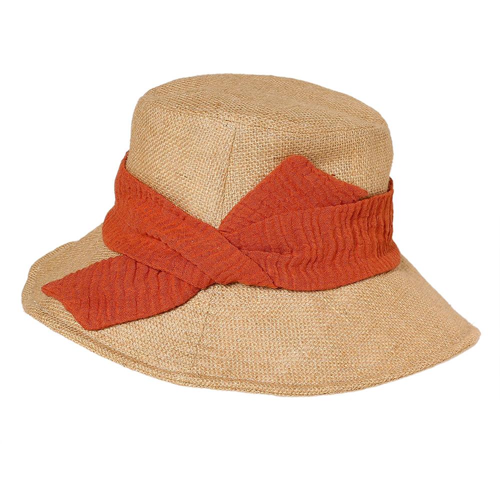 麻混素材のカラーリボンが華やかなジュートハット。見た目にも涼しげなジュートハットは春夏のお出かけ等にとてもおすすめです。つば先にはワイヤーが入っていますので、お好みの形にしていただけます。